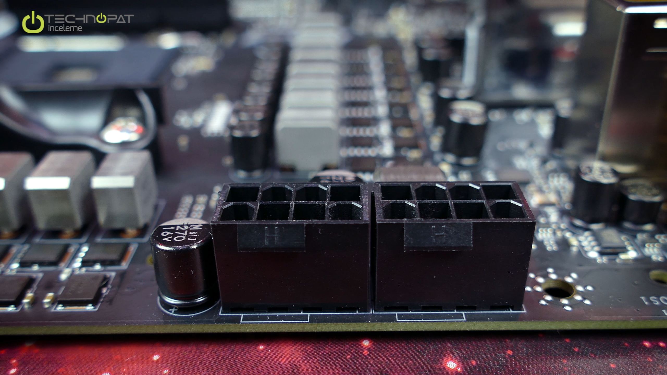 Güç kaynağı seçiminizde önemli bir faktör de EPS adı verilen işlemci güç girişleri. Bu anakart 2 adet 8 pinli EPS güç girişine ihtiyaç duyuyor. Bazı giriş seviyesi 700W’lık güç kaynaklarında bile bu EPS güç kabloları tek 8 pin ile sınırlı tutulduğu için kullanıcılar sıkıntı yaşayabiliyor. Bu sebeple sisteminizi toplarken buna dikkat etmekte fayda var.