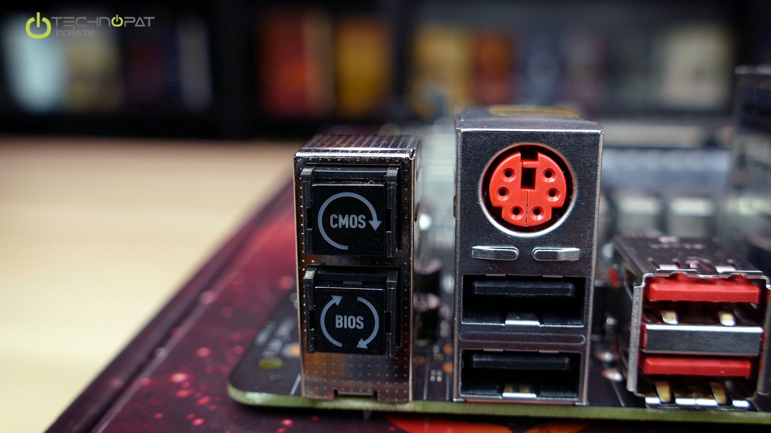 Bilgisayarınızla ilgili önemli bir sorun yaşadığınızda hayat kurtaran 2 önemli diğer buton arka panelde kullanımımıza sunulmuş. Bunlar Bios sıfırlama ve işlemcisiz, belleksiz ve ekran kartsız bios flaşlama yapmanızı sağlayan Flashback+ butonu.