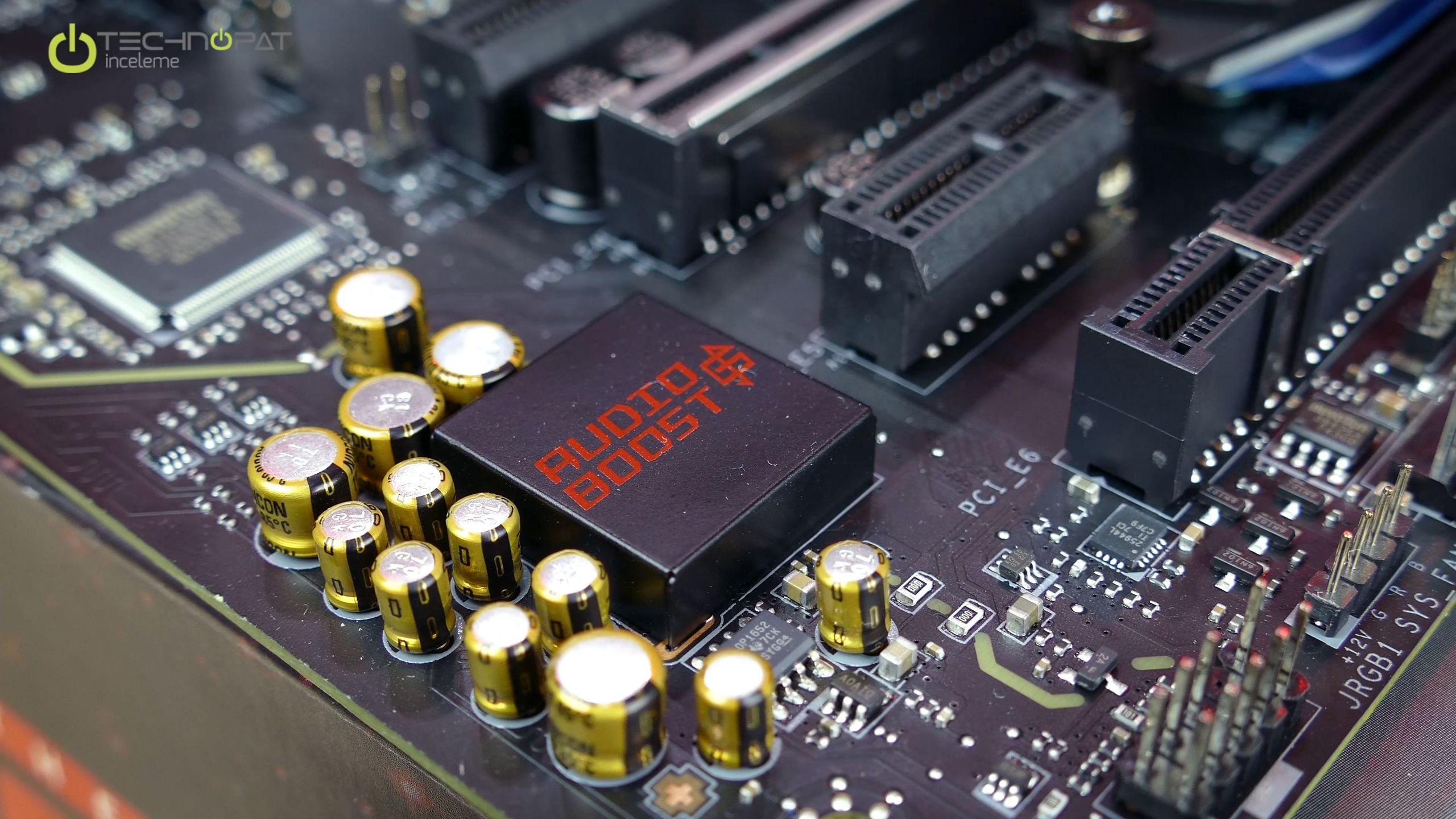 Anakartta tercih edilen ses yongası Realtek ALC1220’ye MSI’ın AudioBoost 4 özelliği eşlik ediyor. MSI AudioBoost 4 120db sinyal/gürültü oranına sahip 32bit dijitalden analoğa dönüştürücü, 600 Ohm’a kadar destek veren kulaklık amfisi barındırmakla kalmıyor. Ses devre bileşenlerini anakartın geri kalanından ayıran, sağ ve sol ses kanalları için ayrı PCB katmanları kullanan bir tasarıma da sahip. Daha sıcak tonlar sunan altın chemicon kapasitörler ve de-pop filtresi de AudioBoost’un diğer özellikleri arasında.