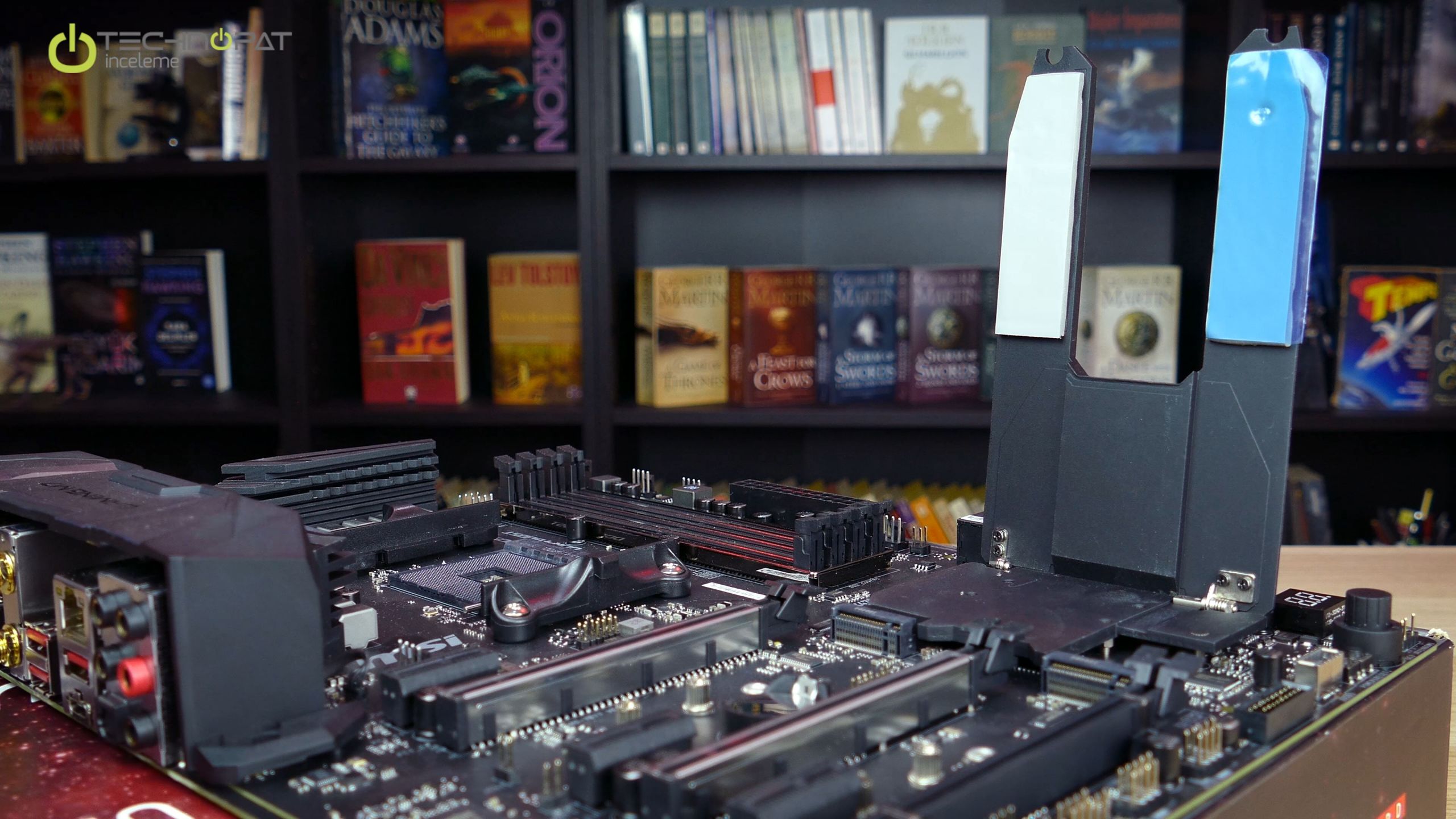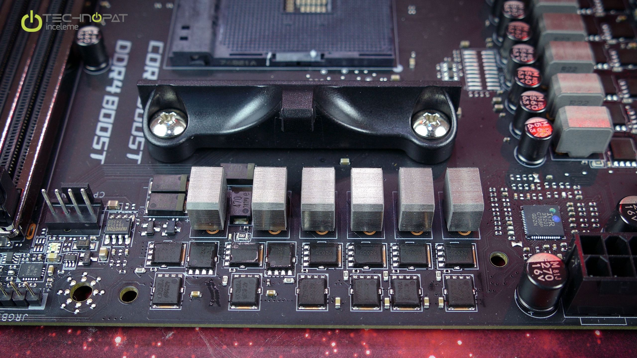 Bu anakartın hız aşırtma yapmak isteyen ve yeni nesil Ryzen işlemcisinden elde edebileceği en küçük performans kırıntısından dahi faydalanmak isteyen kullanıcılara yönelik olduğunu söyleyebiliriz ki VRM ısı dağıtıcısını kaldırdığımızda bunu daha iyi anlıyoruz.