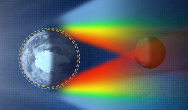 Güneş’ten gelen ışığı tutulma anında Dünya tamamen engeller. Yani Ay’a düz bir şekilde giden ışık kalmaz. Fakat Dünya atmosferi, uzaydan farklı yoğunlukta ve saydam olması sebebiyle, tıpkı avizelerdeki cam kristaller gibi ışığı renklerine ayırır.