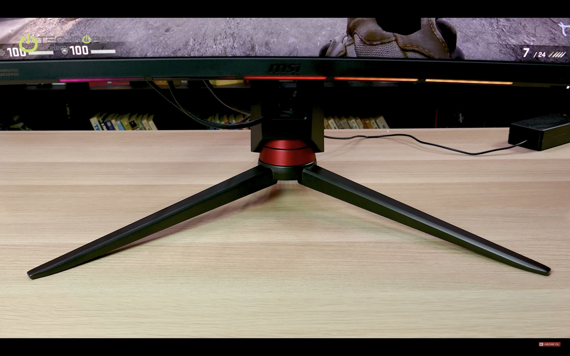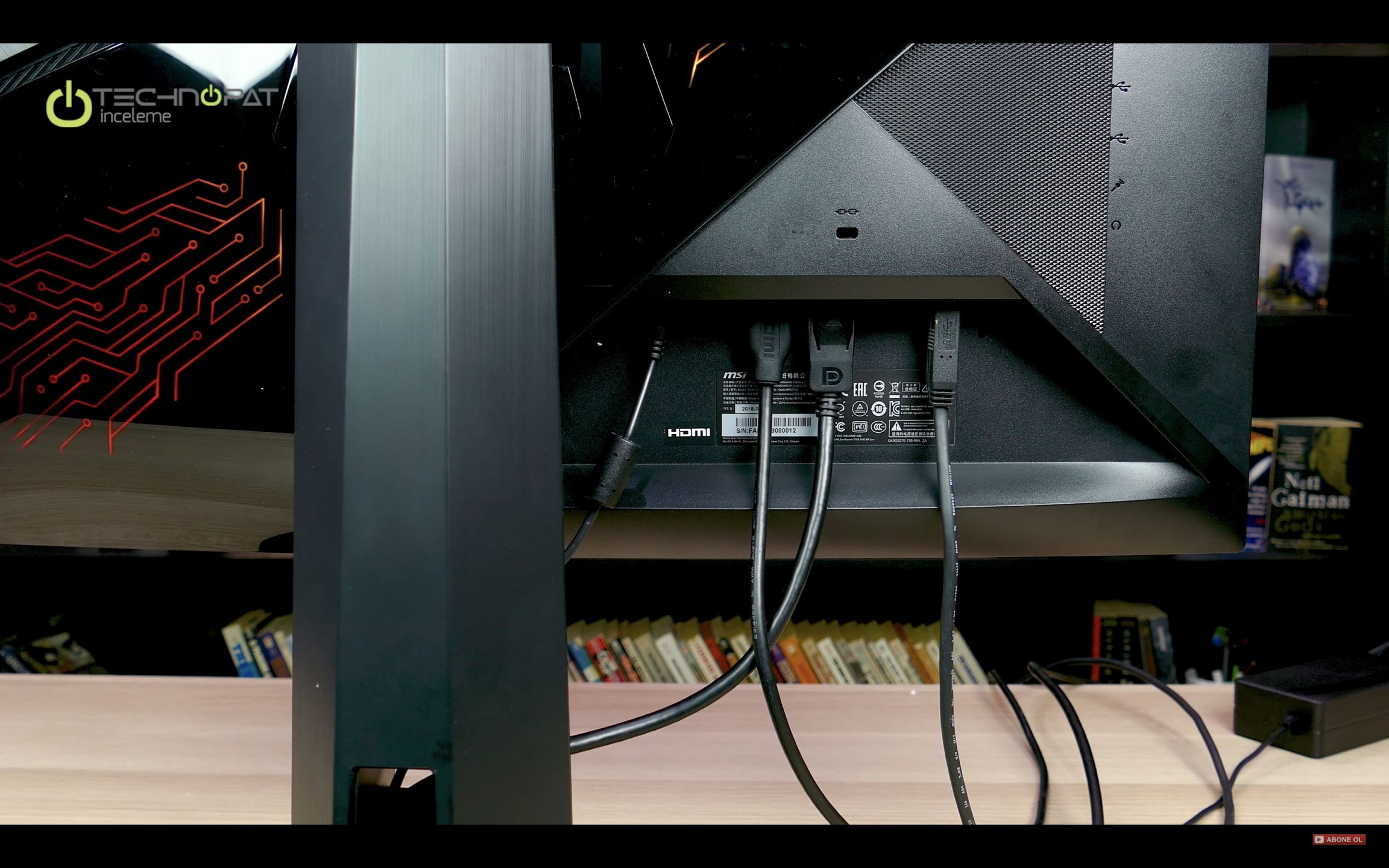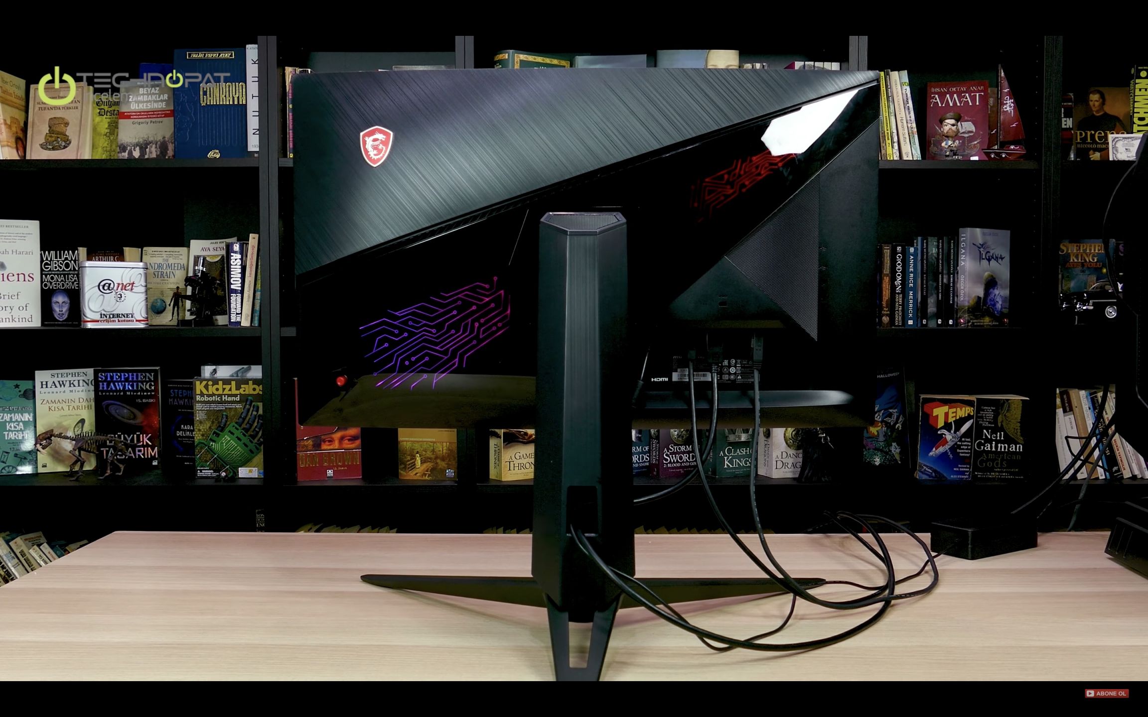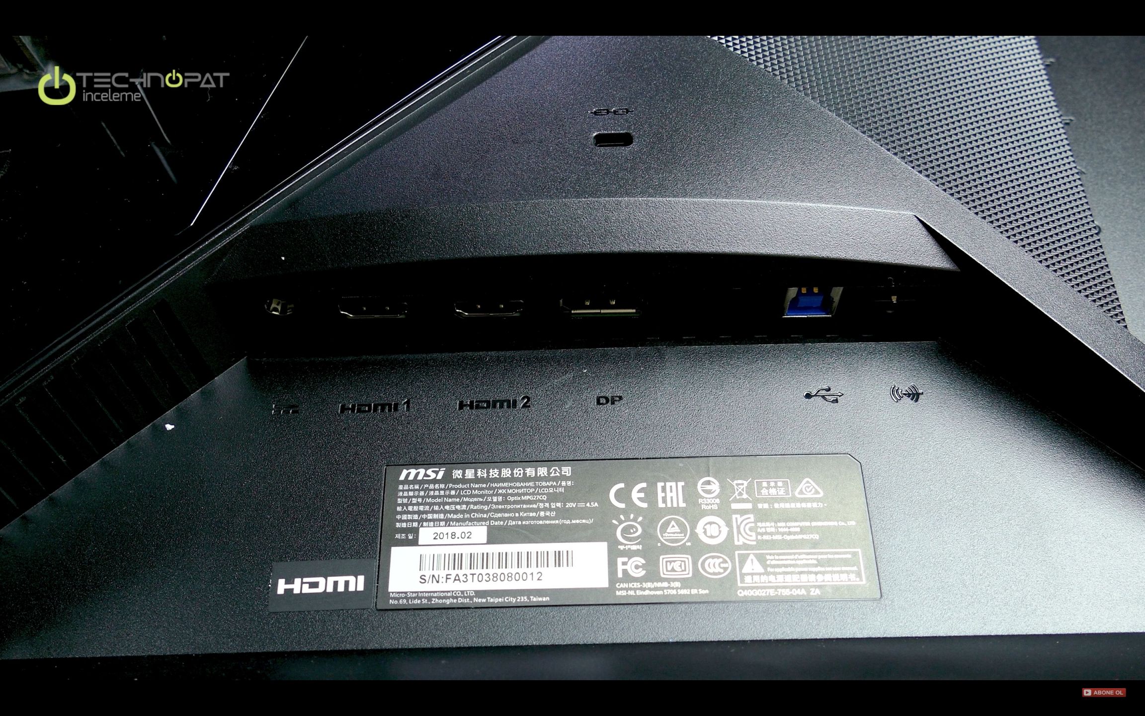 Kasa ve tasarıma baktığımızda stand ayağının dikkat çekici olduğunu görüyoruz. Çerçeveler ince ki bu kullanıcıların dikkat ettiği bir nokta. Kasa arkasında da MSI logosu, ışıklandırma ve en önemlisi bir tarafa toplanmış erişimi ortada kalmamış portlar var. 2 adet HDMı 2. Ve bir adet DisplayPort 1.2 portumuz mevcut. Güç bağlantısı ve diğer kablolama daha sonra stant ayağındaki toplayıcıdan geçirilebiliyor.