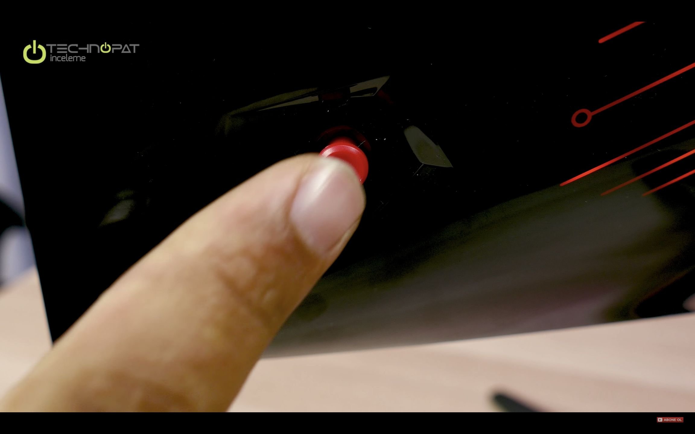 Ortadaki ışıklandırma ve tasarım çizgileri yanında kırmızı joystick OSD kontrolü de arkada yer alıyor. Bu tarz monitörlerde önemli bir nokta.