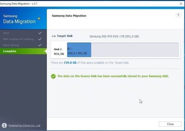 Bilgileri kontrol ediyoruz ve her şey yolundaysa İleri tuşuna basıp işlemi başlatıyoruz. Biz bu videoda 1TB kapasiteli 7200RPM devirli bir sabit diskteki verileri, Samsung 970 Evo 1TB SSD’ye aktarıyoruz. İşlem yaklaşık 20 dakika kadar sürdü.