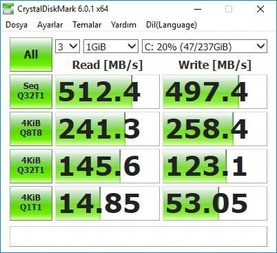 - 512 MB/sn okuma, 497 MB/sn yazma