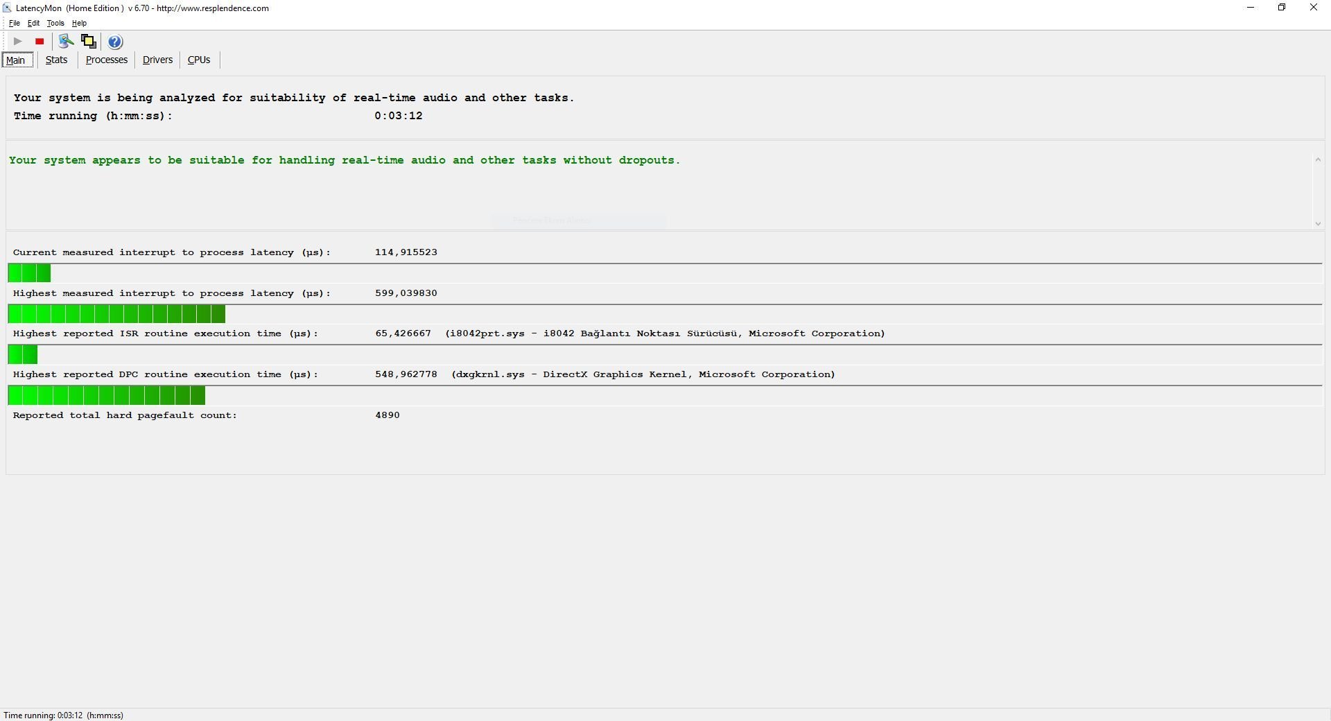 - LatencyMon ile sistem tepkiselliğini ölçtük ve burada Swift 5’in gerçek zamanlı ses işleme yapabilecek kadar tepkisel olduğunu tespit ettik.