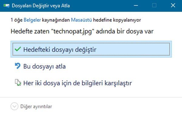 Bazı kullanıcıların iddiasına göre Windows 10 Ekim güncellemesi, “.zip” arşivlerinden çıkan dosyalar için bu pencereyi göstermiyor. Eğer hedef klasörde benzer isimli bir dosyamız varsa, “.zip” dosyasından çıkardığımız aynı isimli dosyayla sorgusuz sualsiz değiştiriliyor. Bu da en başta klasörde bulunan orijinal dosyanın silinmesi anlamına geliyor.