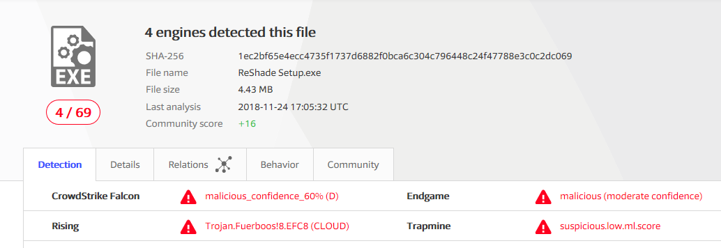 Virustotal’e göre 4 virüs bulunmakta grafik değişimi için bazı sistem dosyalarını modifiye etmesi için gerekli olduğunu biliyorum ancak trojan hariç garip geldi. https://uploads.disquscdn.com/images/abaca414a2e2c6b0ffc15c22a908ac7af45a19583b708defd029f8f378617e04.png