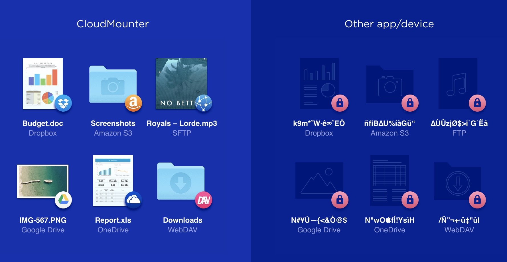 CloudMounter yazılımı sayesinde, kullanıcılar Dropbox, Google Drive ve OnDrive hesaplarını, masaüstündeki bir sabit disk gibi görebiliyor ve klasörler arasında rahatça gezebiliyor.