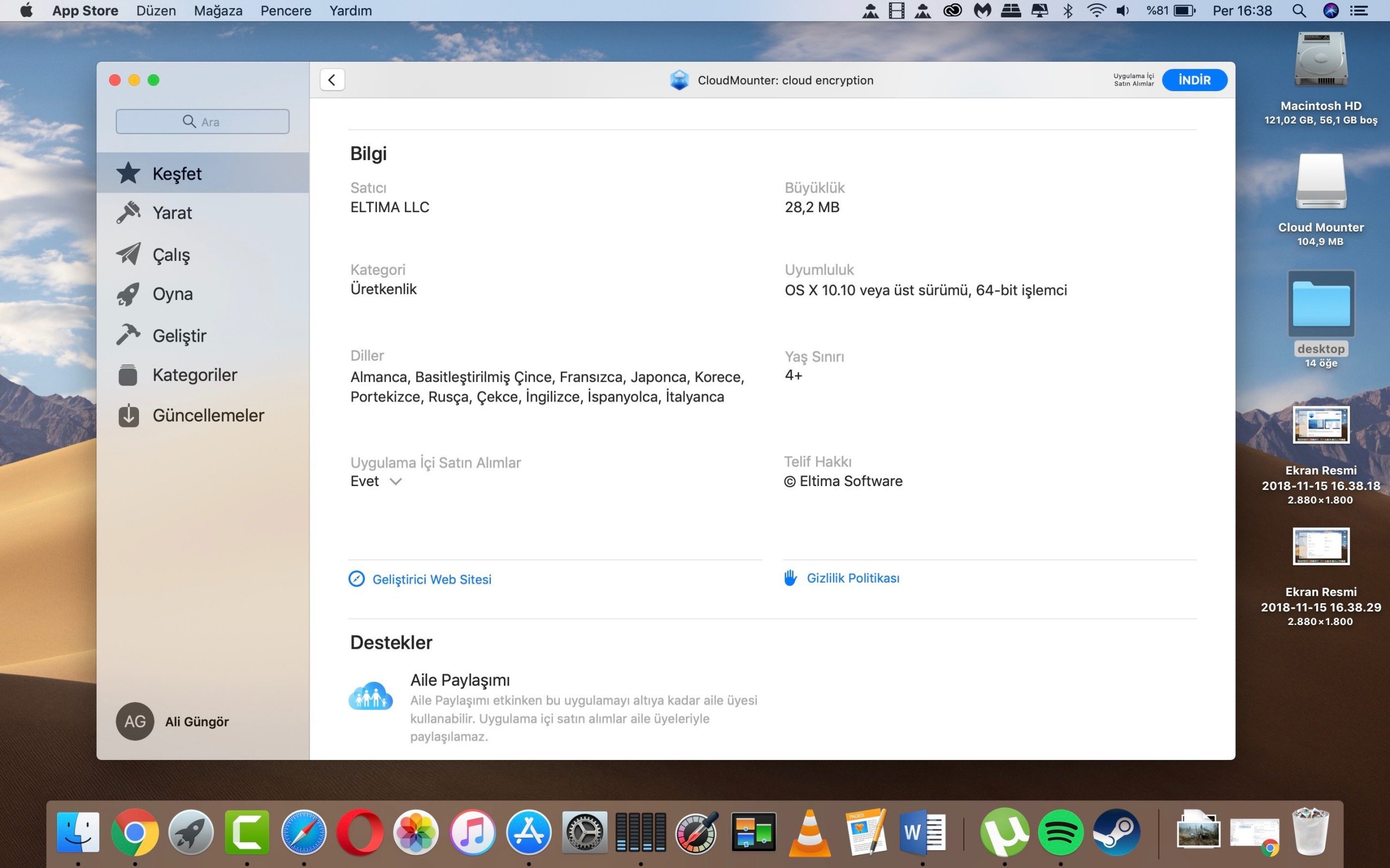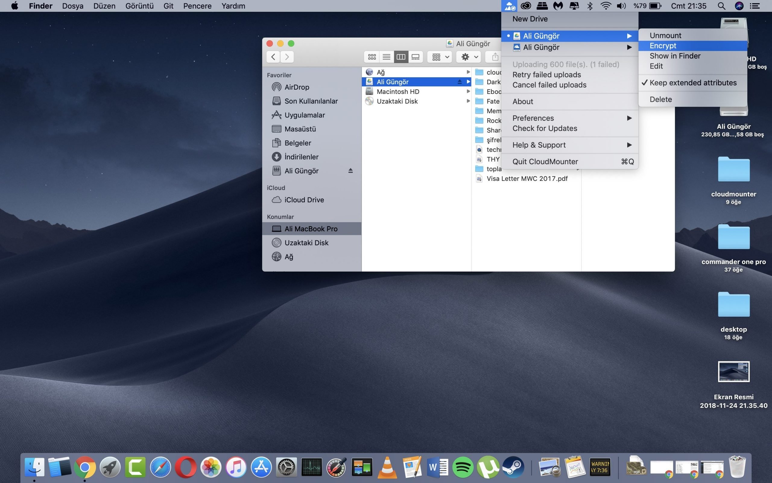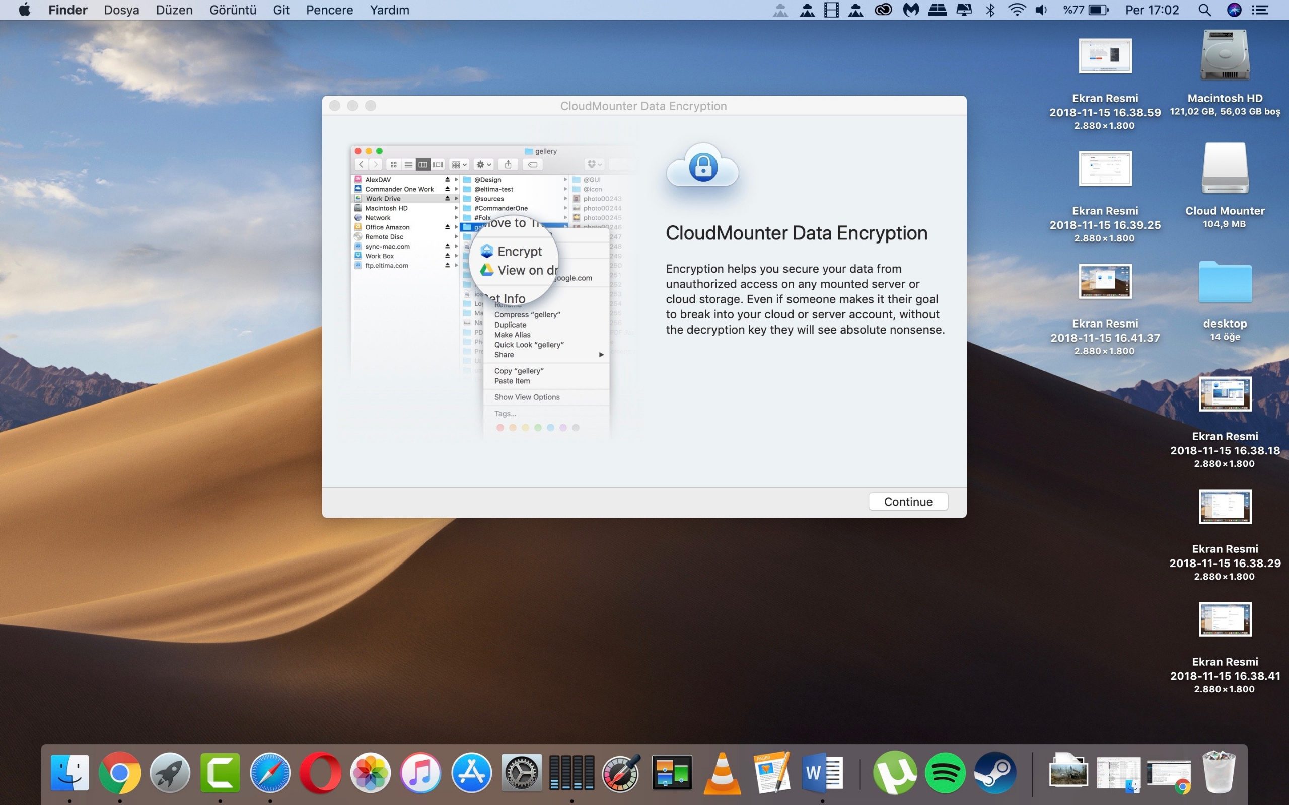 Şifreyi MacOS Keychain’e ekleyebiliyorsunuz. Kendi şifrelemesi AES-256 standardını kullanıyor. Ancak uygulama şifrelemeyle ilgili temel bir uyarımız var, mevcut disk verilerinizi doğrudan topluca şifrelemeyin. Özellikle Google Docs formatlarında daha önceki sürümlerde sorunla karşılaşanlar oldu. Biz mevcut CloudMounter 3.4 sürümünü kullandık.