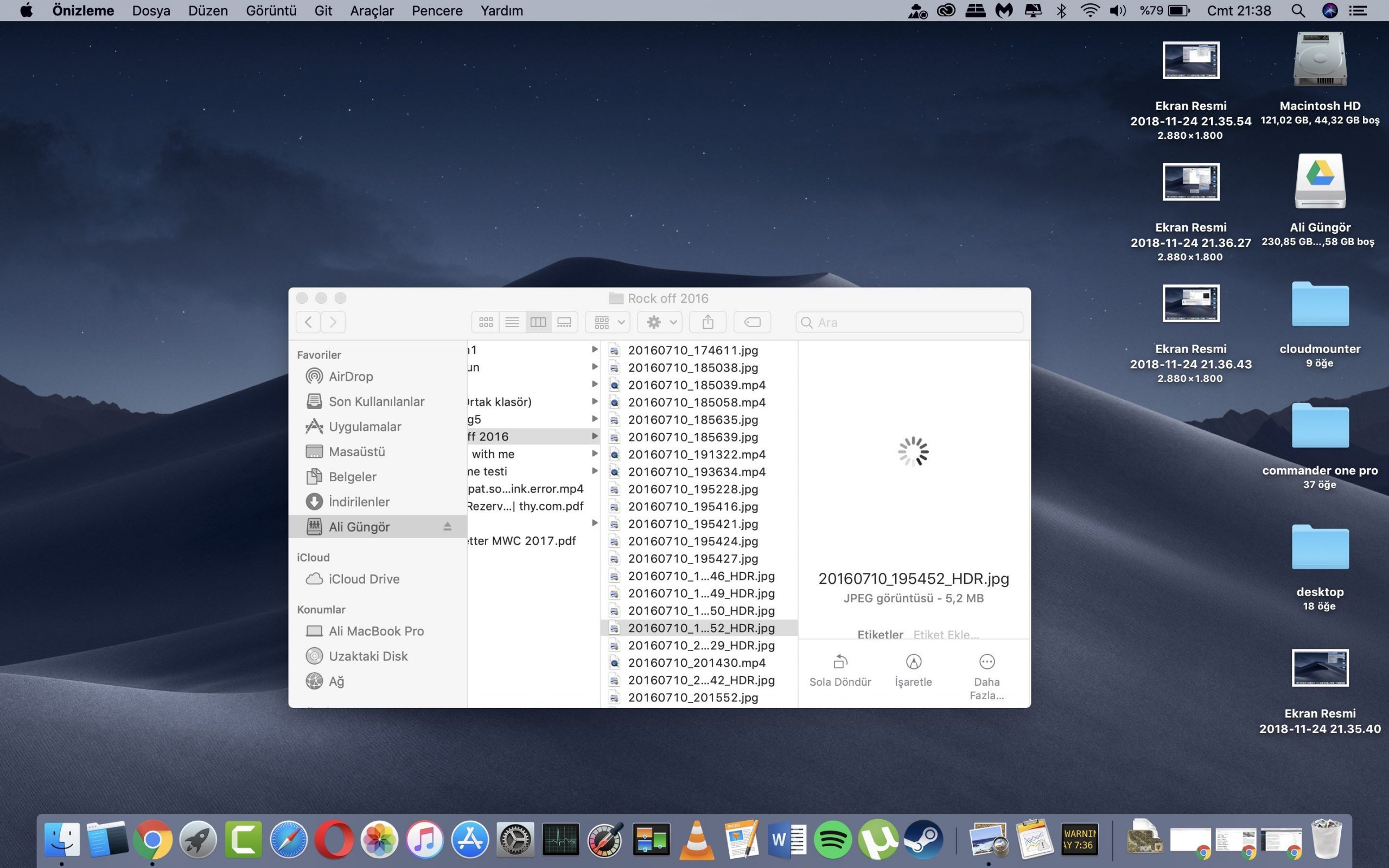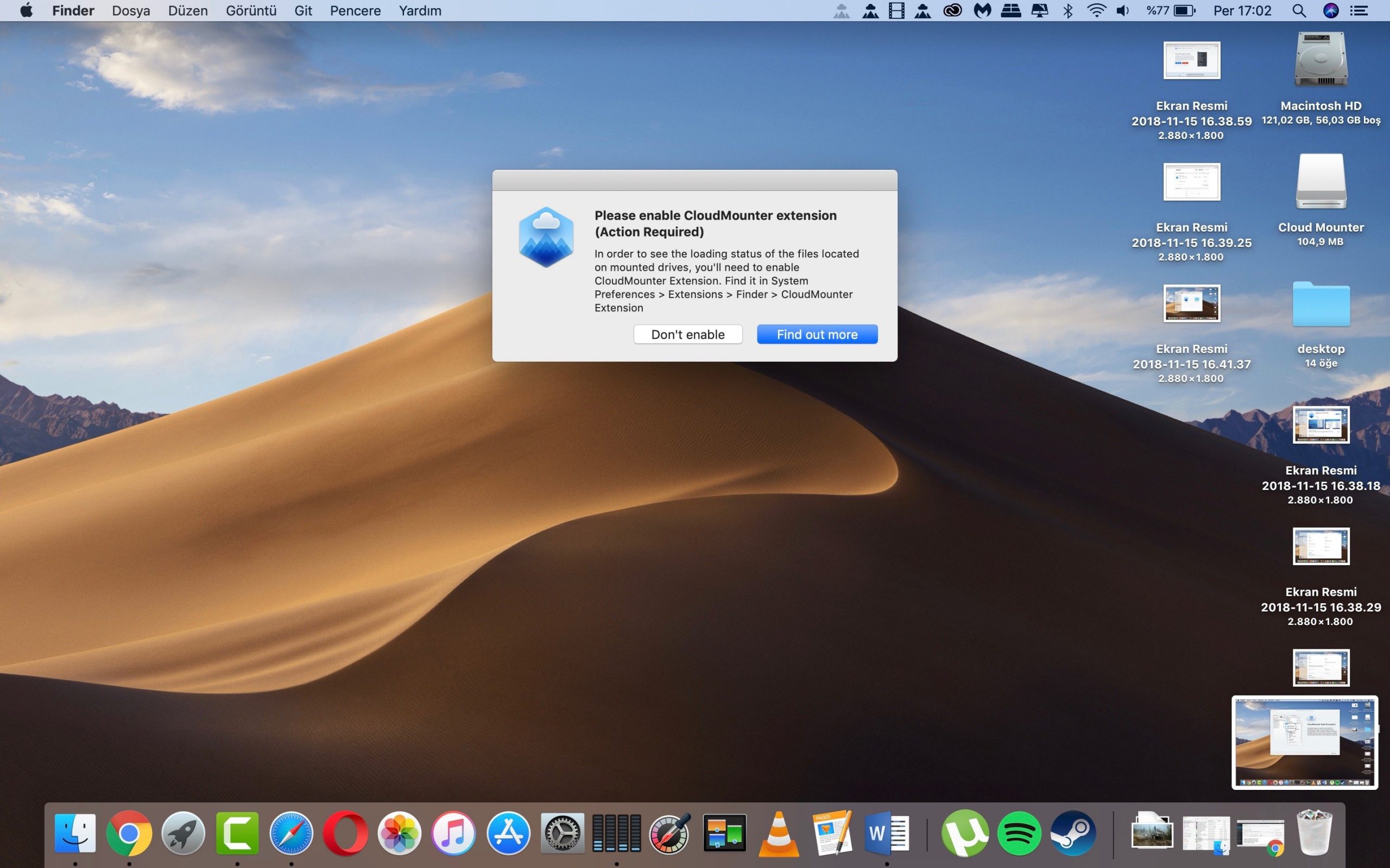 Bir diğer konuya geçersek, CloudMounter ne kadar buluttaki dosyaları sistemimdeymiş gibi gösterse de bazı özelliklerin eksikliğini kullandıkça farketmek mümkün. Sistemindeki dosyaların Thumbnail yani ufak görsellerini rahatlıkla görebilirim. Ancak buluttaki dosyaların bu şekilde bir görünümü, çok bantgenişliği harcayacağı için CloudMounter’a bir seçenek olarak konulmamış. Bulut kullanımda internet kullanımından kaçış yok, ancak ufak azaltmalar yapılabiliyor.