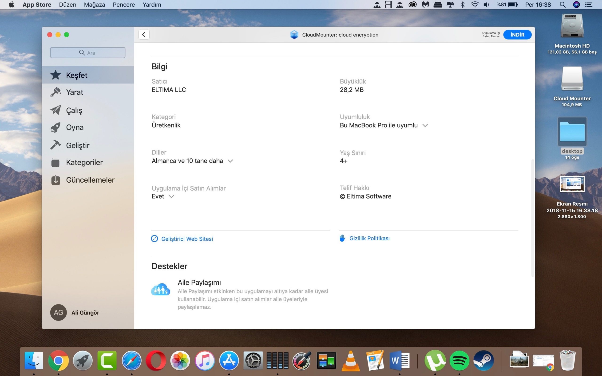 Ayrıca yine sitesi üzerinden aldığınız sürümde, App Store sürümünde olmayan “Mount as Network Drive” ve “Make this drive visible to other accounts on this computer” seçenekleri var. Yani ağa bağlı sürücü modelinde ve cihazdaki diğer hesapların erişimine açık şekilde kullanabiliyorsunuz. Apple kendi mağazasındaki uygulamaların bazı yeteneklerini kısıtladığı için, 3. Parti uygulamalarda tavsiyemiz geliştiricinin kendi sitesindeki sürümü tercih etmeniz olacaktır.