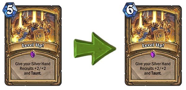Dolayısıyla board’da çok önde olsak bile her turn yerdeki 1-1’lik minyonları tek tek kesmemiz gerekiyordu. Level Up! kartının manası 5’ten 6’ya çekilerek Odd Paladin destesine büyük darbe vuruldu. Çünkü 6 mana gereksinimi, kartın desteye eklenemeyeceği anlamına geliyor.