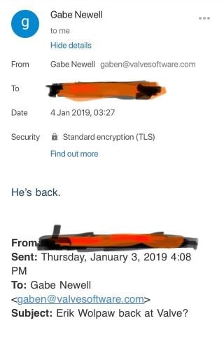 Oyunların Credits bölümünü izlemeyi tercih eden ender oyunculardan biri, Artifact’in Credits kısmında Erik Wolpaw’ın bulunduğunu fark etti. Oyuncu, 2017’de Valve’dan ayrılan Wolpaw’ın isminin çalışan listesinde unutulmuş olacağını düşünerek Gabe Newell’a e-posta gönderdi. Gabe Newell ise Wolpaw’ın geri döndüğünü onayladı.