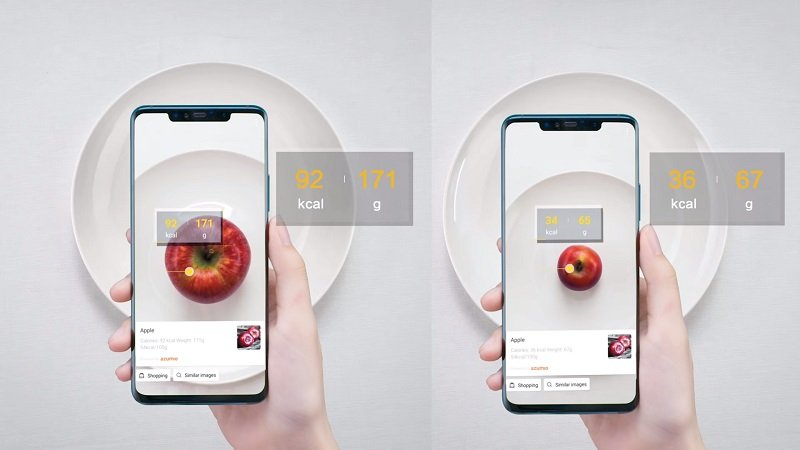 Huawei Mate 20 Pro, giderek daha da hareketsizleşen hayat tarzına karşı mücadelede kullanıcılarına yiyecek tanımlama özelliğiyle yardımcı olabilir. Bu özellik sayesinde kamerayı bir yiyeceğe doğru tuttuğunuzda telefon onu tanıyor, ne olduğunu ve kaç kalori olduğunu size söylüyor.