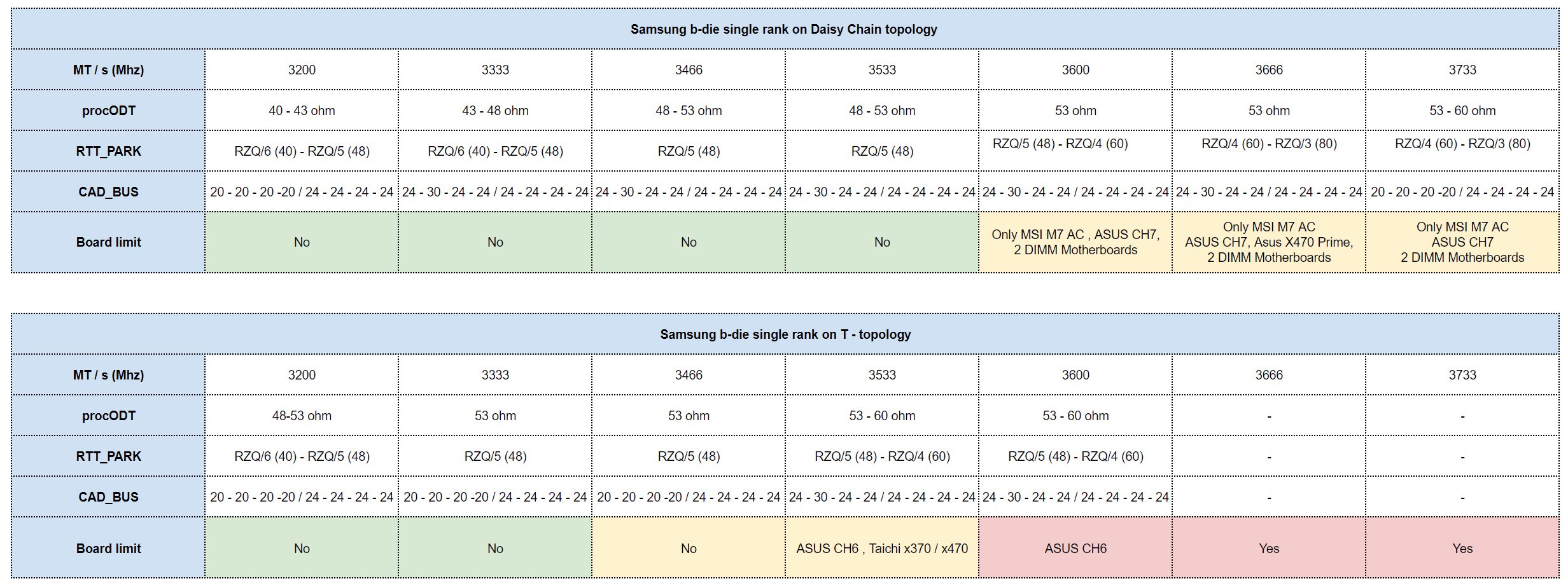 Ryzen platformunda genellikle bellek saati 1733-1766 MHz (DDR-3466, DDR-3525) ile sınırlıdır. Daha yüksek frekanslarda da çalışmak mümkündür. Bellek kontrolcüsünün iyi çalışması için düşük procODT değerleriyle birlikte çalışan modülleri kullanmak daha uygun olacaktır. AMD’ye göre bellek kontrolcüsünün procODT değeri 40-60 ohm değeri arasında olmalıdır. Bu alan içerisindeki kararlılık özellikle CAD yapılandırmasına ve anakartın kalitesine bağlıdır.