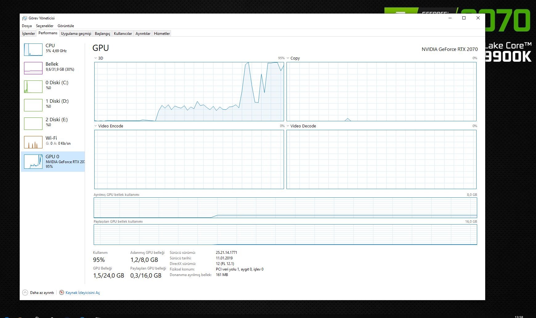 - GPU: Kullanım oranı, frekans, Turbo frekans, VRAM frekansı ve sıcaklık