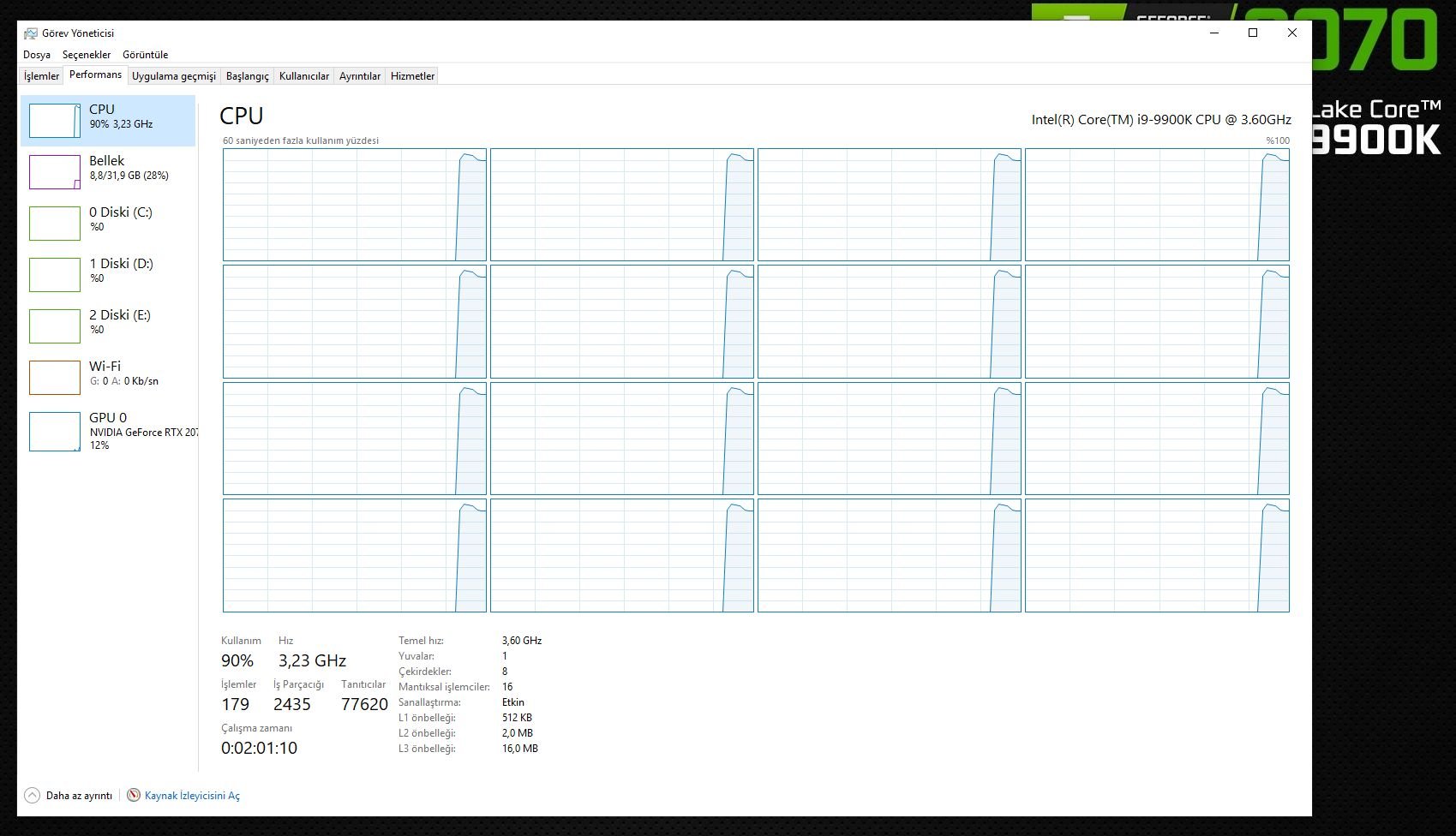 - CPU: Kullanım oranı, frekans, Turbo frekans, çekirdek voltajı ve sıcaklık