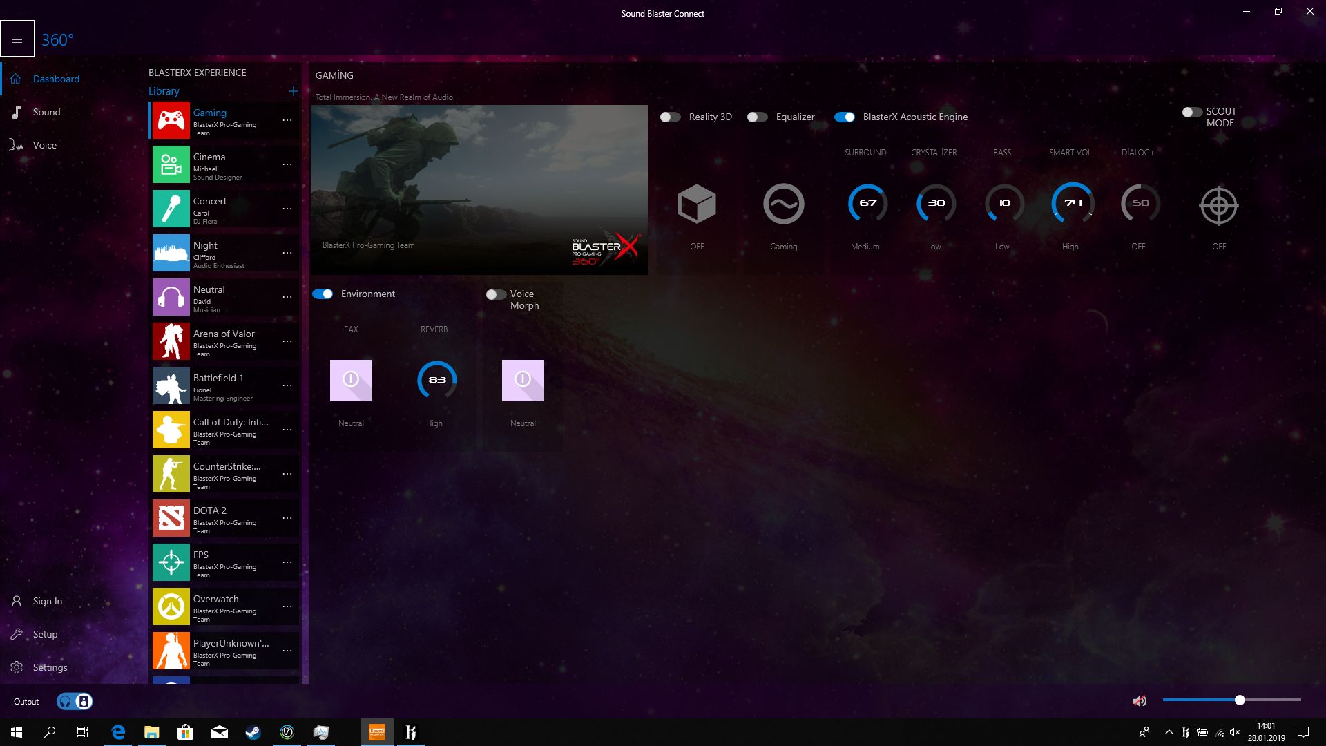 - Oyun, film, konser, gece ve doğal ses modlarına ek olarak birçok popüler oyun için hazır profiller