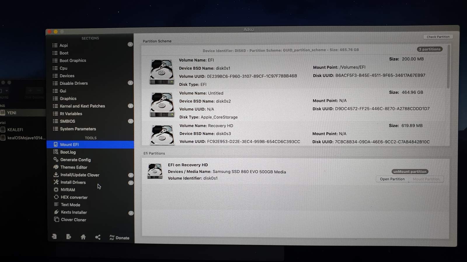 KEALEFIMJV klasörüm yok malasef masaüstünde sadece clover efi ve ınstall macos mojave diskleri var. Neyi yanlış yaptım acaba