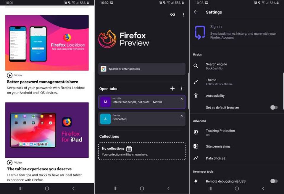 Mozilla’nın gizlilik odaklı GeckoView motorunu kullanan Firefox Preview uygulaması aktarılan bilgilere göre hız ve güvenlik konularında ön plana çıkıyor.