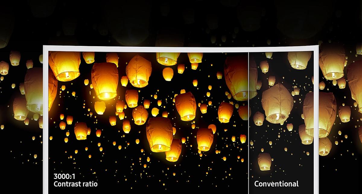 – Sızan ışığı azaltır: Samsung’un kavisli ekran teknolojisi ekranın kenarlarından ışık kaçışını en aza indirerek tüm görüş alanında daha eşit siyah renk sağlar.