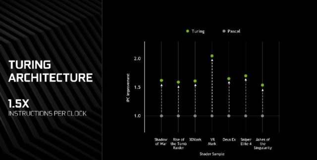 Performansı arttırmak için NVIDIA mühendisleri geleneksel gölgelendirme yapısını belirgin şekilde güncelledi. Turing stream mikroişlemcileri sayesinde firma, geleneksel gezer nokta paketiyle uyumlu yeni bir tam sayı işlem seti sunuyor. Böylelikle gezer nokta işlemleriyle tam sayı işlemleri eş zamanlı olarak yürütülebiliyor. Turing GPU’ları da daha büyük L1 ön belleği ile donatılıyor. Tüm bunlarla birlikte de Pascal mimarisiyle kıyaslandığında Turing, 1.5 kat daha fazla saat başına işlem performansı sunuyor.