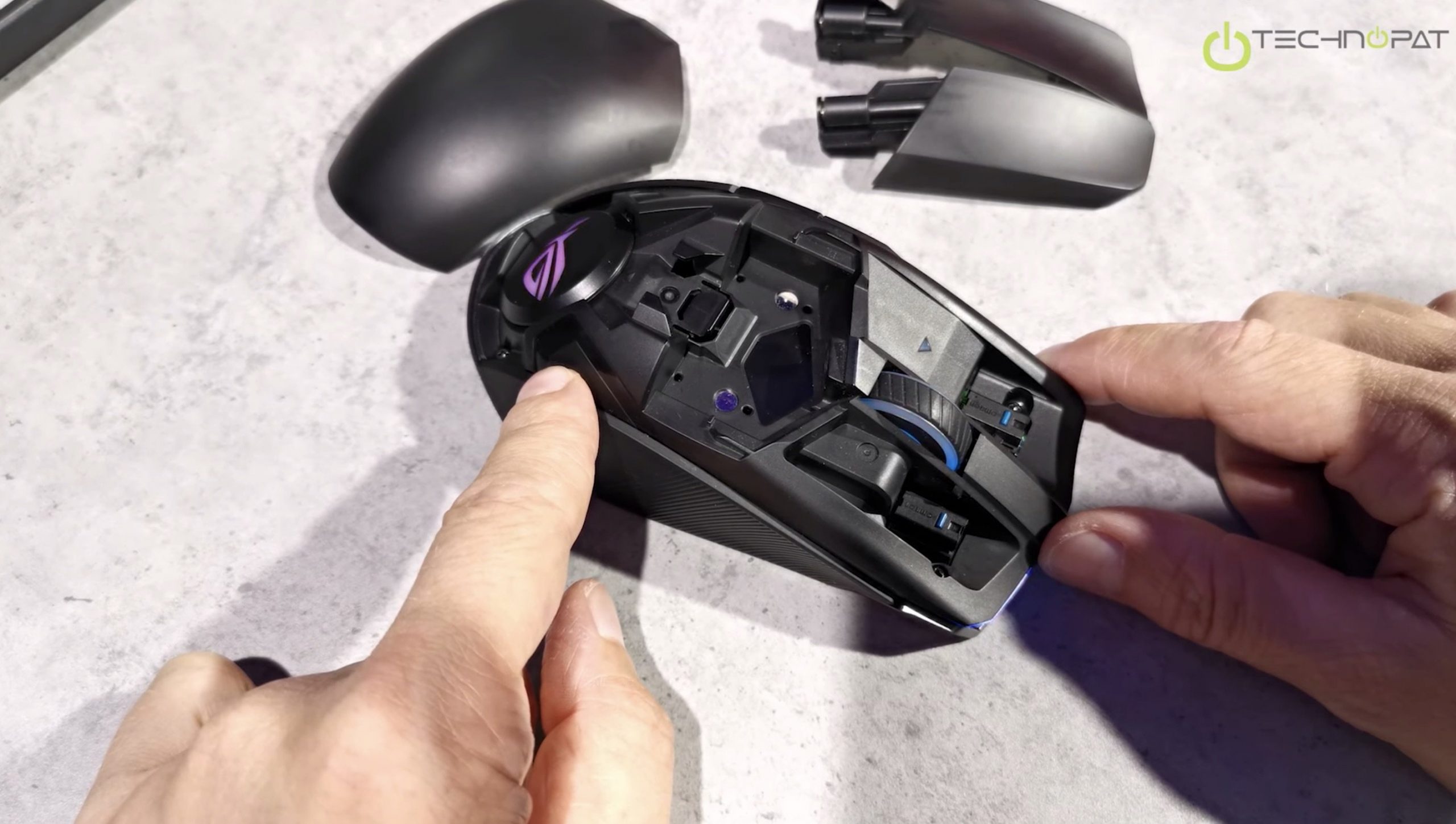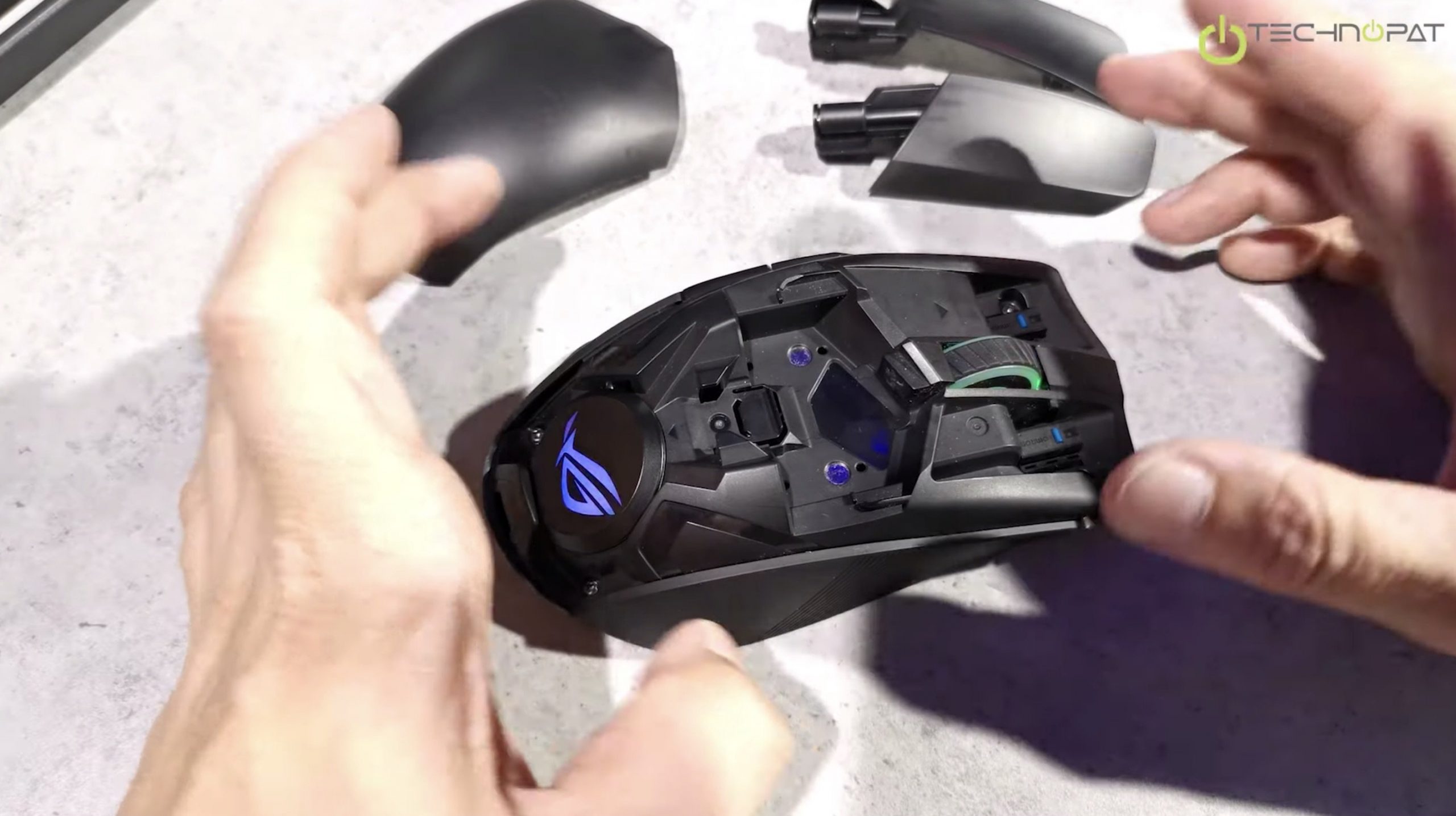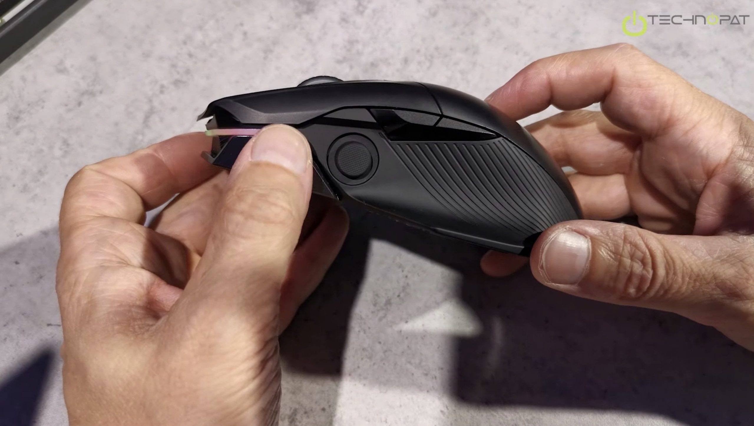 Bilgisayara 2.4 GHz kablosuz, Bluetooth ya da kablolu olarak bağlanabiliyor. Type-C portu mevcut. Alt kısımda mod değiştirme tuşları mevcut. Qi şarj destekli ve kablosuz olarak da şarj edilebiliyor. Kapakları mıknatıslı ve kolayca sökülebiliyor. Omron anahtarlar da el ile sökülebiliyor ve değiştirilebiliyor. Bunlara ek olarak aydınlatmalı ROG logosu yerine de 3D baskı logo yapıp yine değiştirmeniz mümkün. Aura ışıklandırma desteği, diğer ASUS ürünleriyle uyumlu çalışmasını sağlıyor.