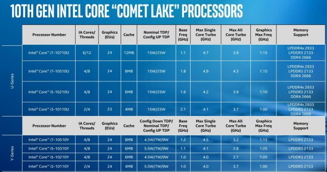 Intel’in yeni Comet Lake işlemcileri U-Serisi ve Y-Serisi olarak karşımıza çıkıyor.