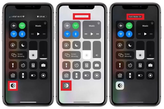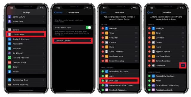 Bu özelliği Kontrol Merkezi’ne eklediğinizde her şey çok daha kolay oluyor. Böylece istediğiniz anda işletim sistemini genel olarak karartabilir ya da eski haline döndürebilirsiniz.