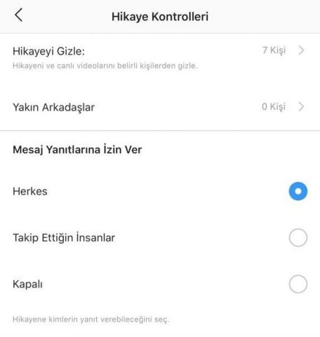 Ayrıca, herkesin hikâyelerinizi yeniden paylaşmasına ve doğrudan mesaj olarak iletmesine izin veren sistemi de ‘Paylaşım’ başlığı altından devre dışı bırakabilirsiniz.