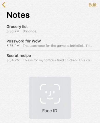 Diğer uygulamaların Face ID’yi kullanıp kullanmadığını kontrol etmeniz ve gerekli olup olmadığını sorgulamanız gerekir. Bazı servisler ödemeleri yetkilendirmek bazıları ise gizliliği korumak için Face ID’den yararlanıyor. Not uygulaması bile Face ID ile kullanılabiliyor. Bir mesajı gizli tutmak için, notun sağ üst köşesinde bulunan küçük simgeye dokunun ve Notu Kilitle seçeneğini aktif edin.