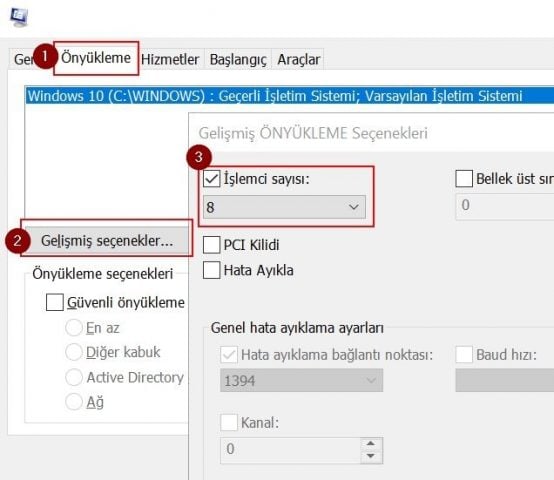 Bunun için Windows + R tuş kombinasyonunu kullanarak Çalıştır‘ı açın ve msconfig.exe yazarak çalıştırın. Önyükleme sekmesine tıklayın. Ardından işletim sistemini seçerek Gelişmiş seçenekler‘e tıklayın. Açılacak pencerede işlemci sayısı kısmını işaretleyin ve Windows uygulamalarının kullanımına sunulacak işlemci sayısını seçin. Daha sonra değişiklikleri uygulayarak bilgisayarınızı yeniden başlatın.