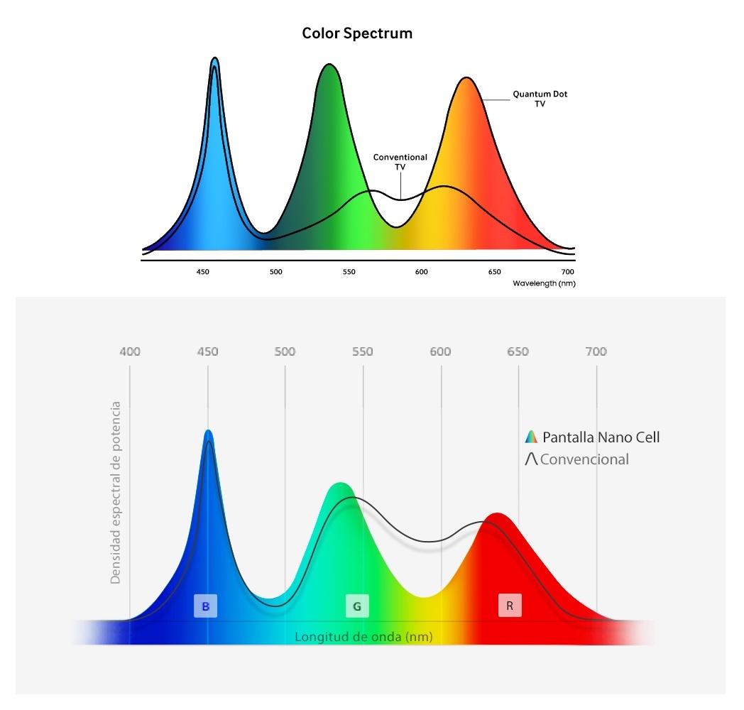 Quantum Dot teknolojisinin diğerlerinden farkını anlayabilmek için, öncelikle mevcut LED arka aydınlatma teknolojisini tanımak gerekiyor. LED teknolojisinde görüntünün oluşturulması için iki önemli kısım var. Bunlardan ilki sarı fosfor kaplı mavi LED arka aydınlatma iken, ikincisi de kırmızı, yeşil ve mavi alt piksellerden oluşan renk filtresidir. Arkadan gelen beyaz ışık kırmızı, yeşil ve mavi pikselleri farklı oranda aydınlatarak, ortaya farklı renklerin çıkmasını sağlar. Üç farklı renk ve 256 seviye parlaklığı da işin içine girince, toplamda 16.7 milyon renk elde edilebiliyor.