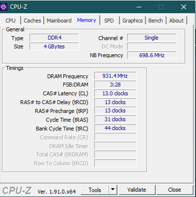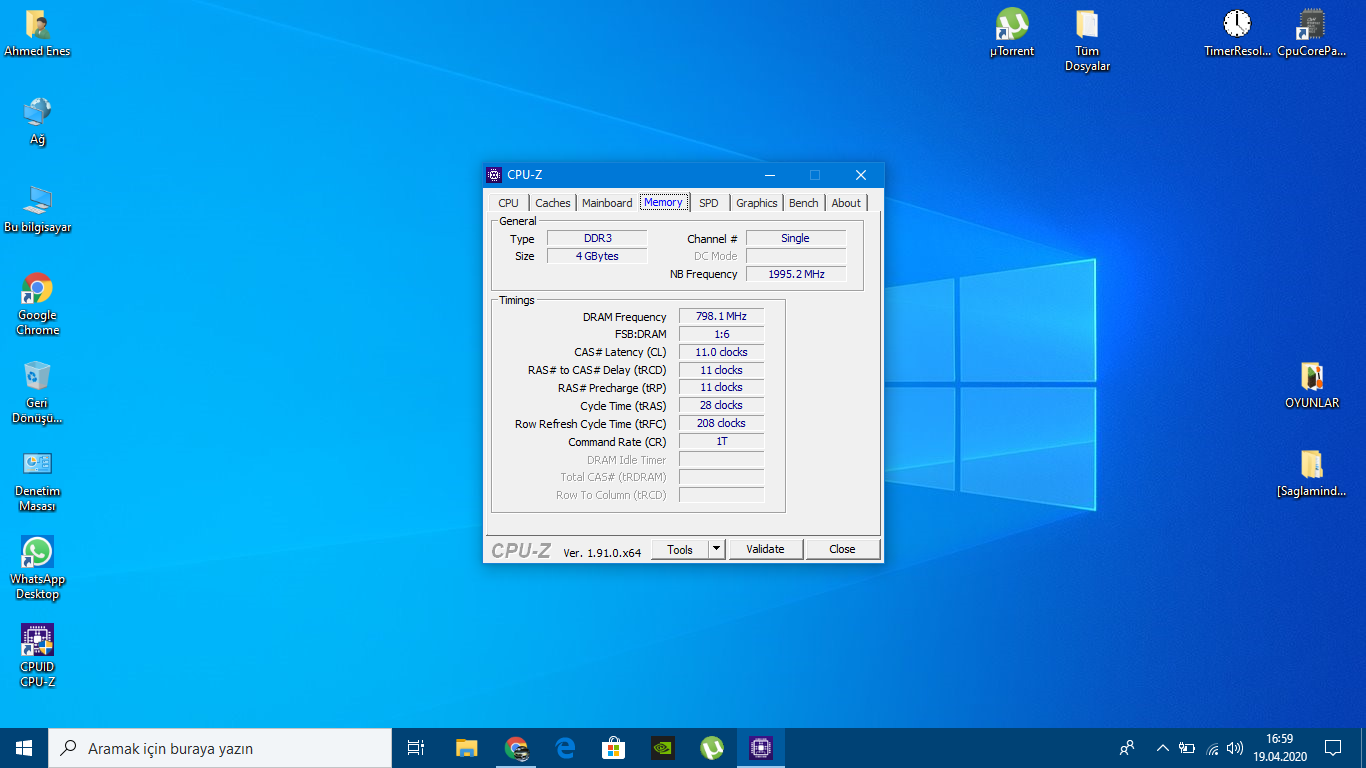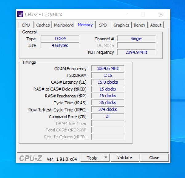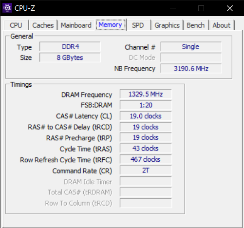 Mevcut RAM hızını Memory sekmesinde DRAM Frequency altından öğrenebilirsiniz. Bu değeri iki ile çarpacaksınız. Bu sistemde bellekler 2659, yani 2666 MHz’te çalışmakta.