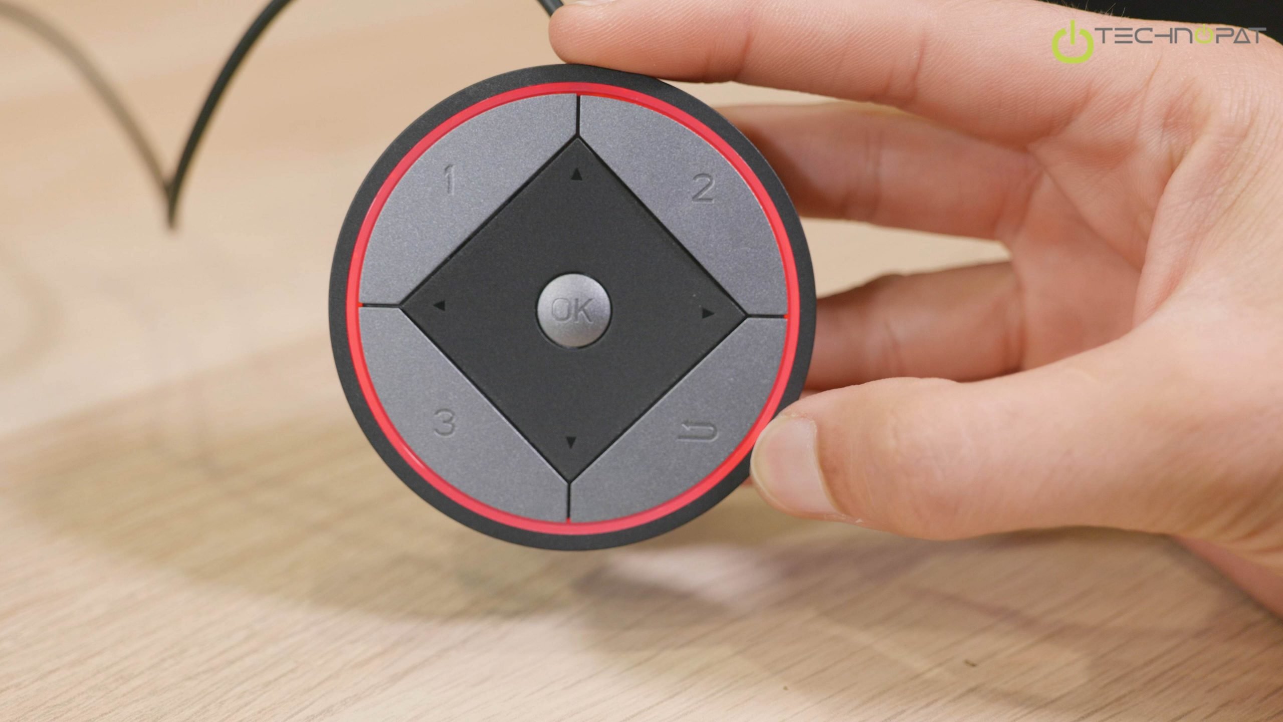 Bu kablolu uzaktan kumandaya ek olarak monitörün altına bir adet thumbstick eklemeyi unutmamışlar. Uzaktan kumandayı kullanmasanız bile, ekran ayarlarınızı buradan yapabilmeniz mümkün.