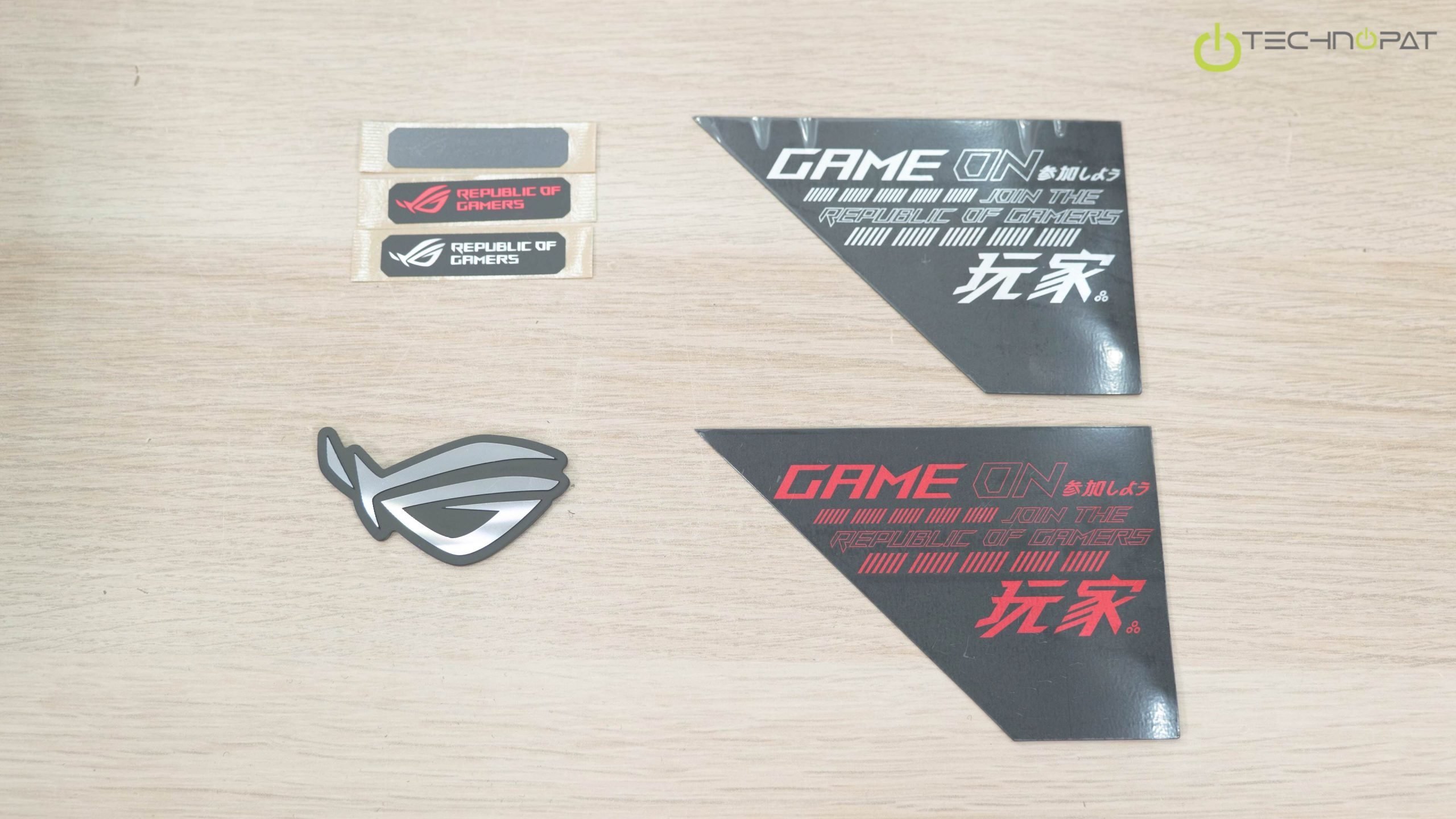 Güç kaynağının kutusunu açtığımızda, dış görünüşü özelleştirmek için mıknatıslı dekoratif parçalar konulduğunu gördük. ASUS bu ürünü ROG ekosistemi içinde pazarlıyor. Bu dekoratif parçalar arasında mıknatıslı gümüş ROG logosu, 3 adet sticker ve yan yüzeylere koyabileceğiniz büyük mıknatıslı parçalar var. Kutuya ayrıca rahat kablo yönetimi için birçok cırt cırtlı kablo bağı dahil edilmiş.