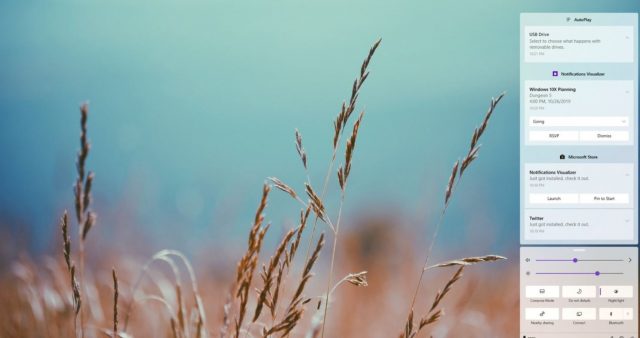 Başlat Menüsü ya da Görev Çubuğu’nun yanı sıra Eylem Merkezi de bir dizi yeni özellik barındırıyor. Eylem Merkezi, artık pencereden hiç ayrılmadan çok daha fazla işlem gerçekleştirmeyi sağlıyor. Ses kontrolleri, güç seçenekleri ve pil yüzdesine de bu arayüz üzerinden erişilebiliyor.