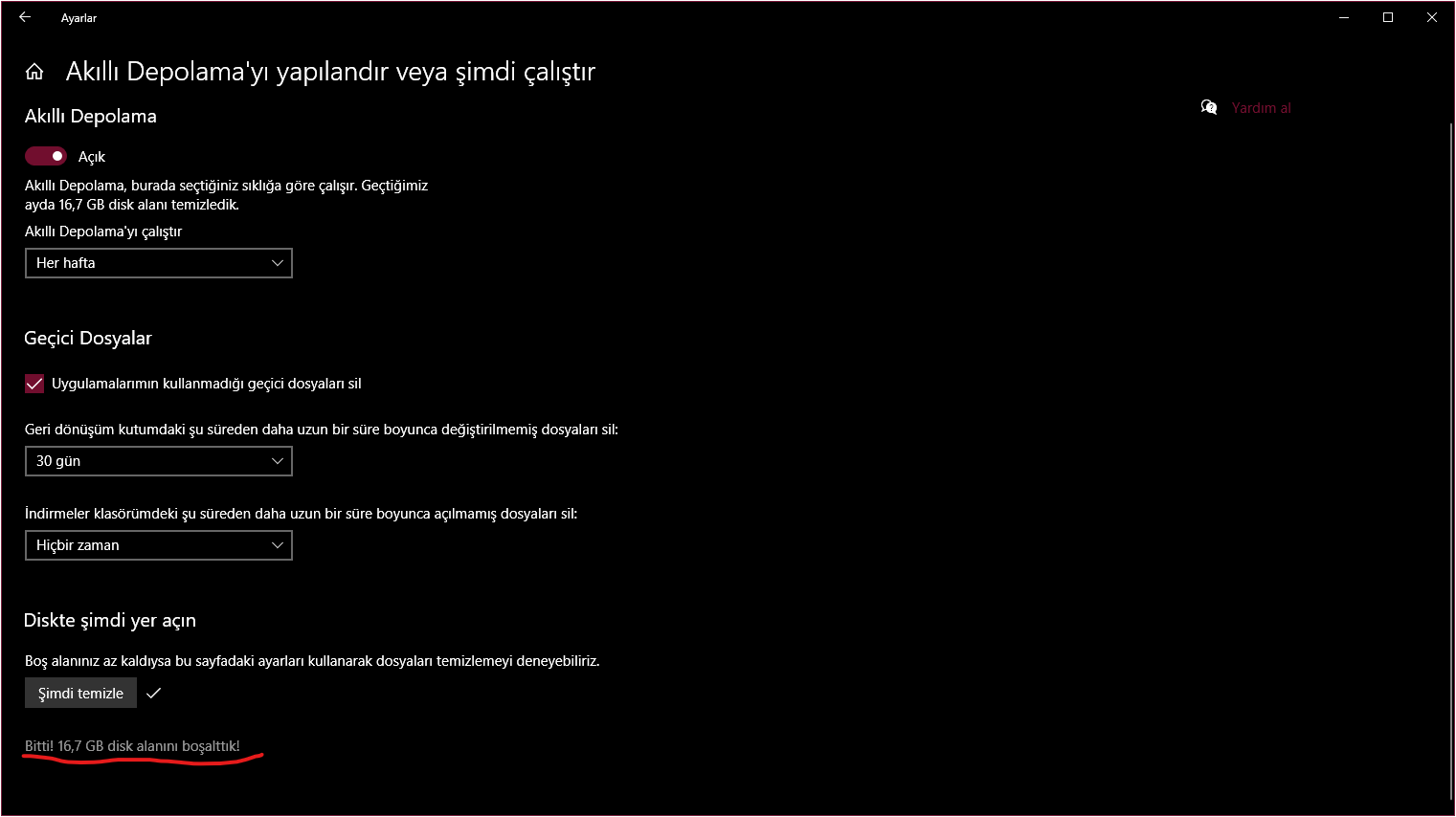 - Başlat > Ayarlar > Sistem > Depolama > Akıllı Depolama’yı yapılandır veya şimdi çalıştır seçeneğine tıklayın.