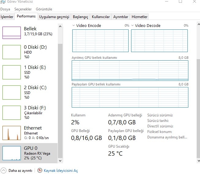 - Yine Görev Yöneticisi altında sistemdeki bir diskin SSD mi yoksa HDD mi olduğunu da görmek mümkün.