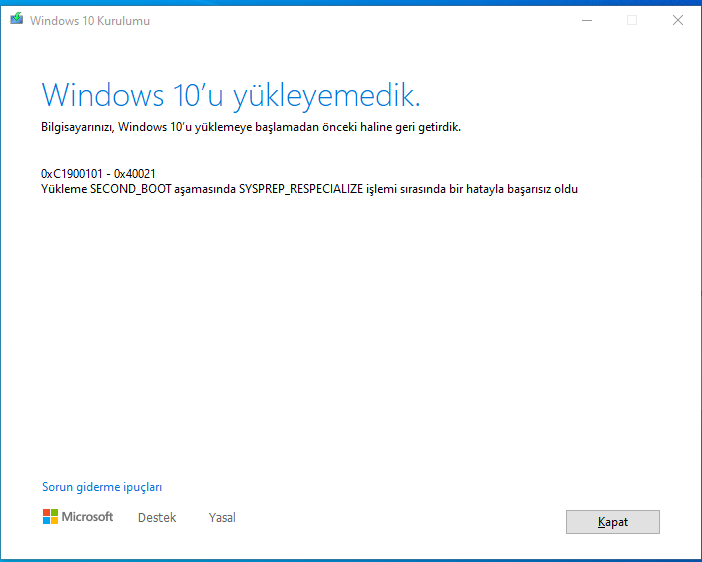 güncelleştirme ile olmadı zaten temiz kurulum istiyor