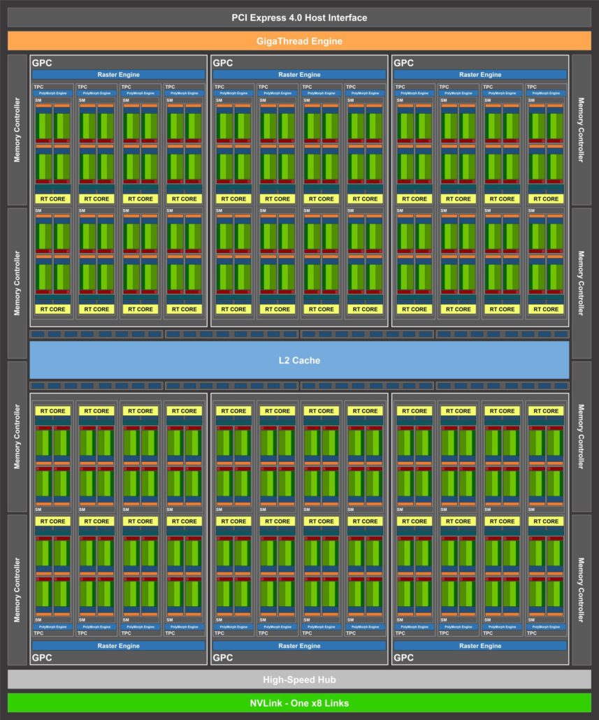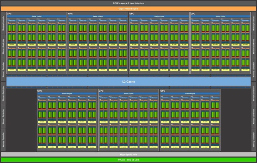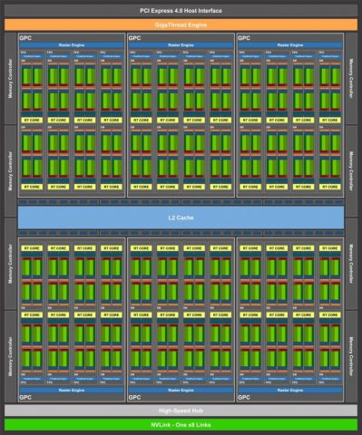 Amiral gemisi GeForce GPU’nun GA102 kod adına sahip olduğu söyleniyor. Bu kart Titan RTX ve RTX 2080 Ti grafik kartlarında gördüğümüz Turing tabanlı TU102 GPU’nun halefi olacak. GPU, 5376 CUDA çekirdeğine karşılık gelen 84 SM’ye sahip. Bu, Titan RTX’te bulunan TU102 GPU’dan %16 daha fazla CUDA çekirdeği demek. GPU, 384 bit veri yolu arayüzünde 12 GB’a kadar VRAM sunabilecek.