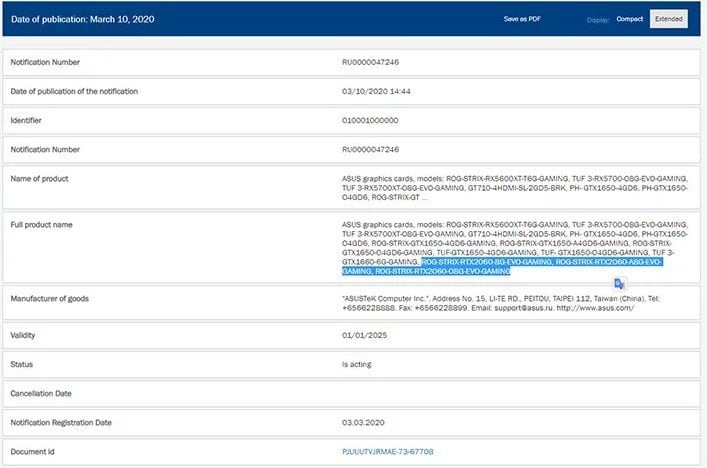 EEC listesinde keşfedilen yeni ASUS markalı ekran kartlarında bellek değişikliği dikkatlerden kaçmadı. Bu girdilerde varsayılan 6 GB yapılandırması yerine 8 GB GDDR6 belleğe sahip üç ROG Strix GeForce RTX 2060 varyantından bahsediliyor.