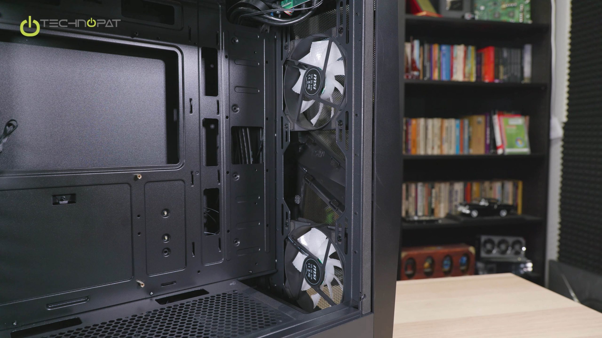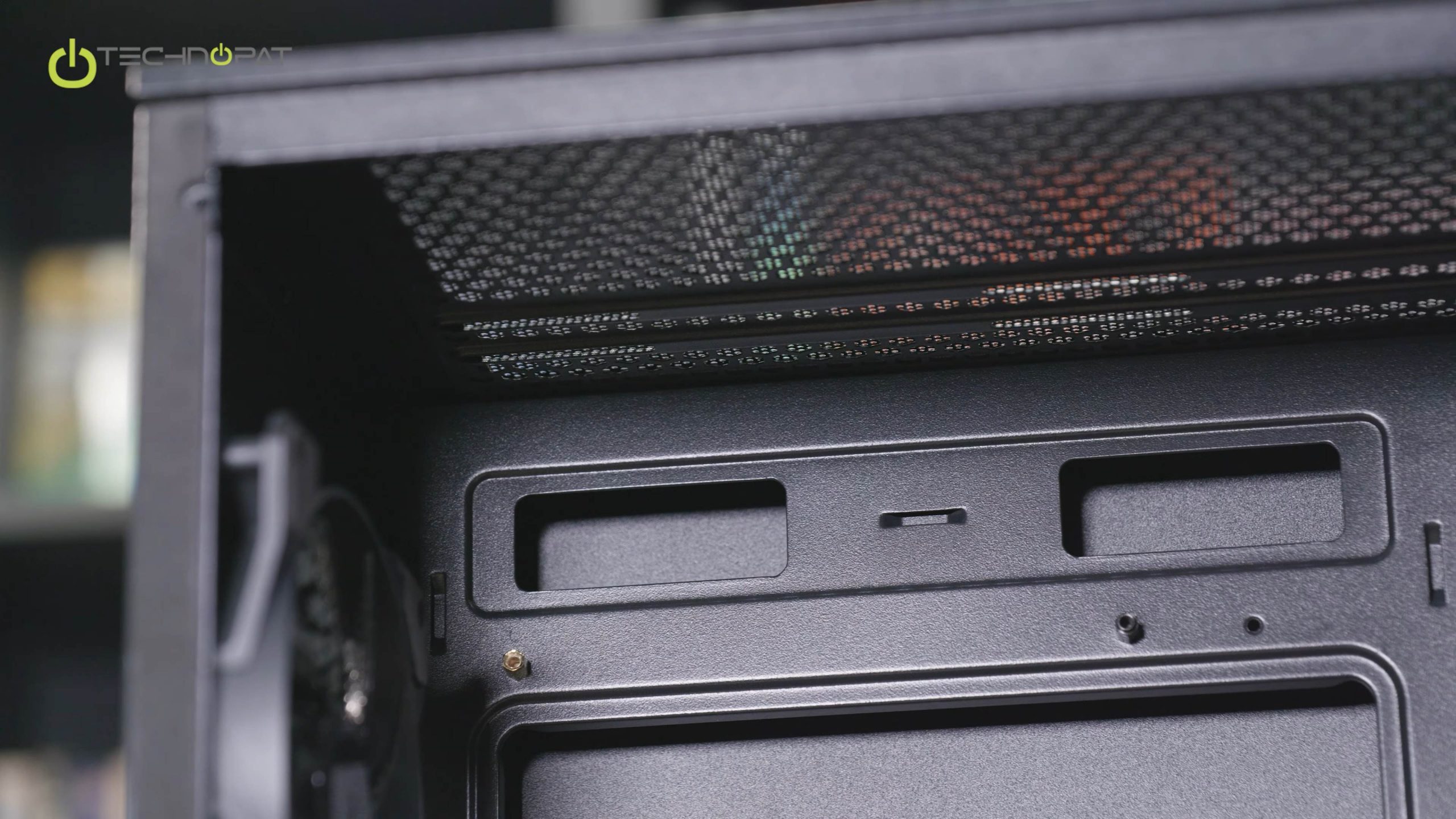 Ön kapak, fanların hava alması için gayet yeterli ve müsait. Yani hava sirkülasyonu eksikliği sebebiyle soğutma problemi yaşatmayacak bir kasa olduğunu söyleyebiliriz. Kasa üstünde mıknatıslı toz filtresi mevcut ve bu filtrenin fan yuvalarının tam üzerine oturup yapışması için hafif bir çukur bulunuyor.