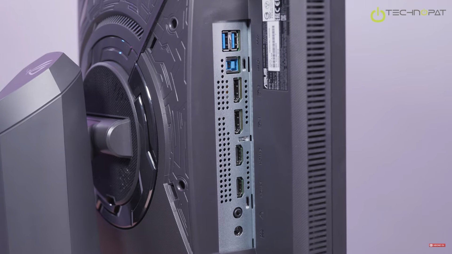 Arka bağlantılara baktığımızda 3.5 mm kulaklık, 2 adet HDMI 2.0, iki adet DisplayPort 1.4, USB 3.0 Type-B girişi ve iki adet Type-A çıkışı yani HUB olduğunu görüyoruz. Ayrıca kasa üzerinde OSD kontrol joystick ve kısayol tuşları sağ arka tarafa başarıyla konumlandırılmış. Arkada Kensington kilidi ve altta güç LED’i de var.