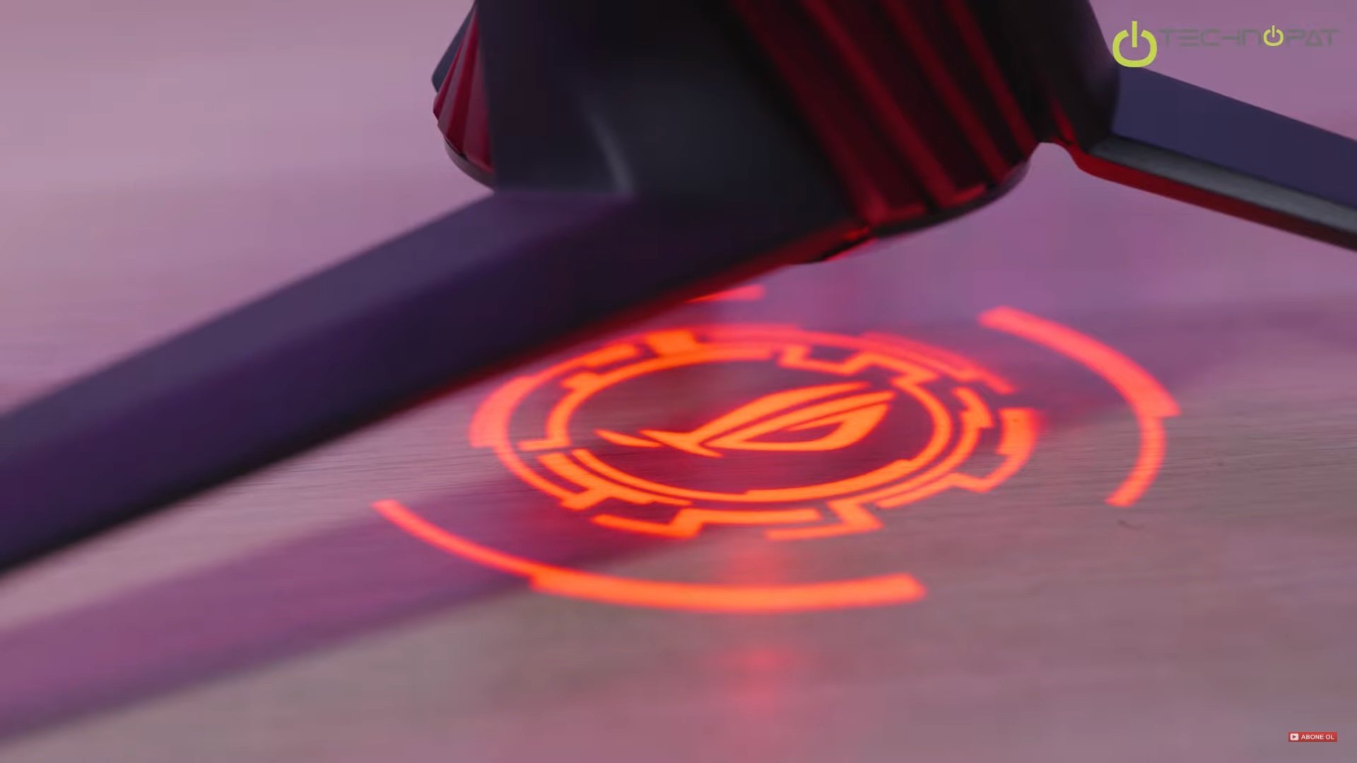 Arka ışıklandırma haricinde en şık kısım standın masaya yaptığı projeksiyon. Burada kullanılacak iki farklı ROG logosu kutudan çıkıyor. Boş olan parçaya ise kendiniz folyo kestirip yapıştırabilir ve mesela takım logonuzu koyabilirsiniz.