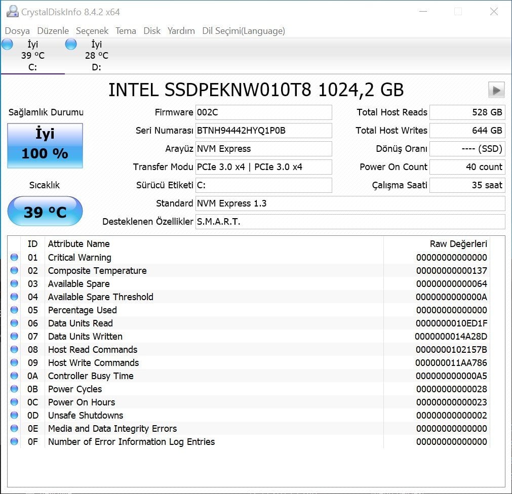 - Bu esnada klavyede ölçtüğümüz en yüksek sıcaklık 39 derece