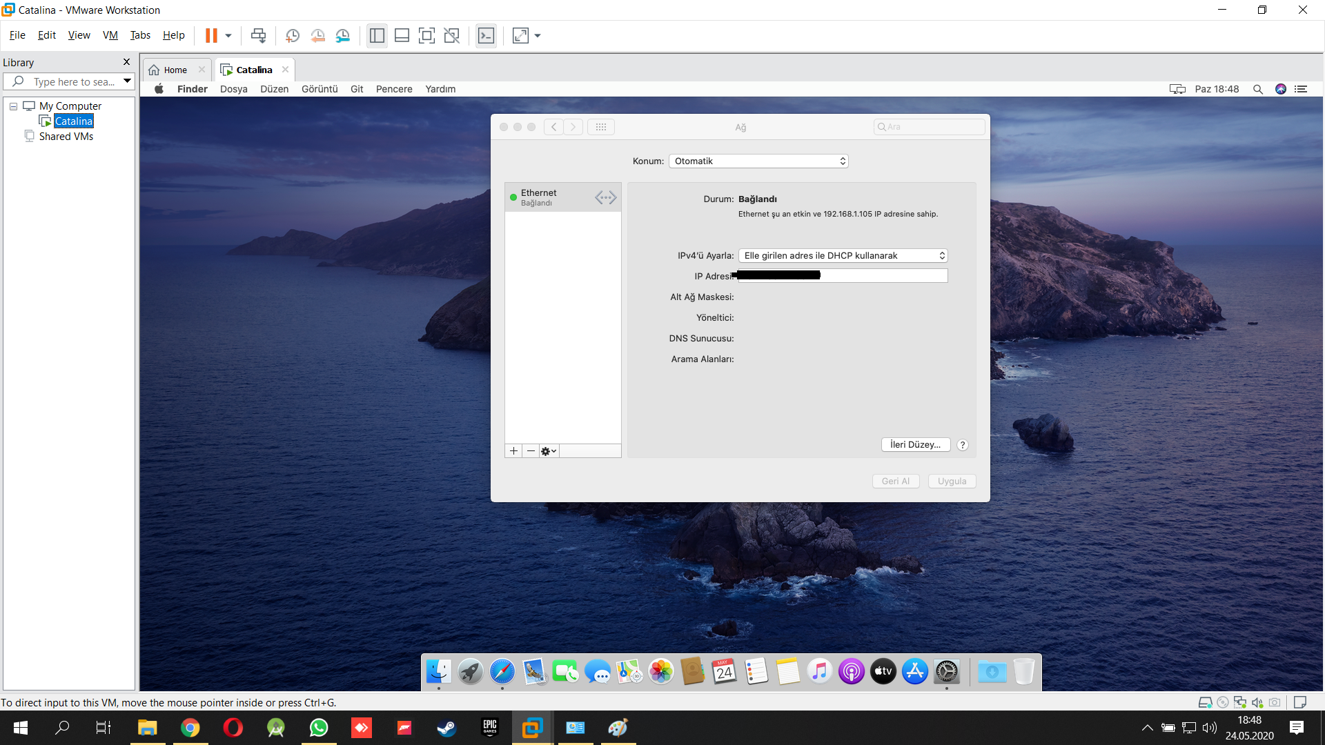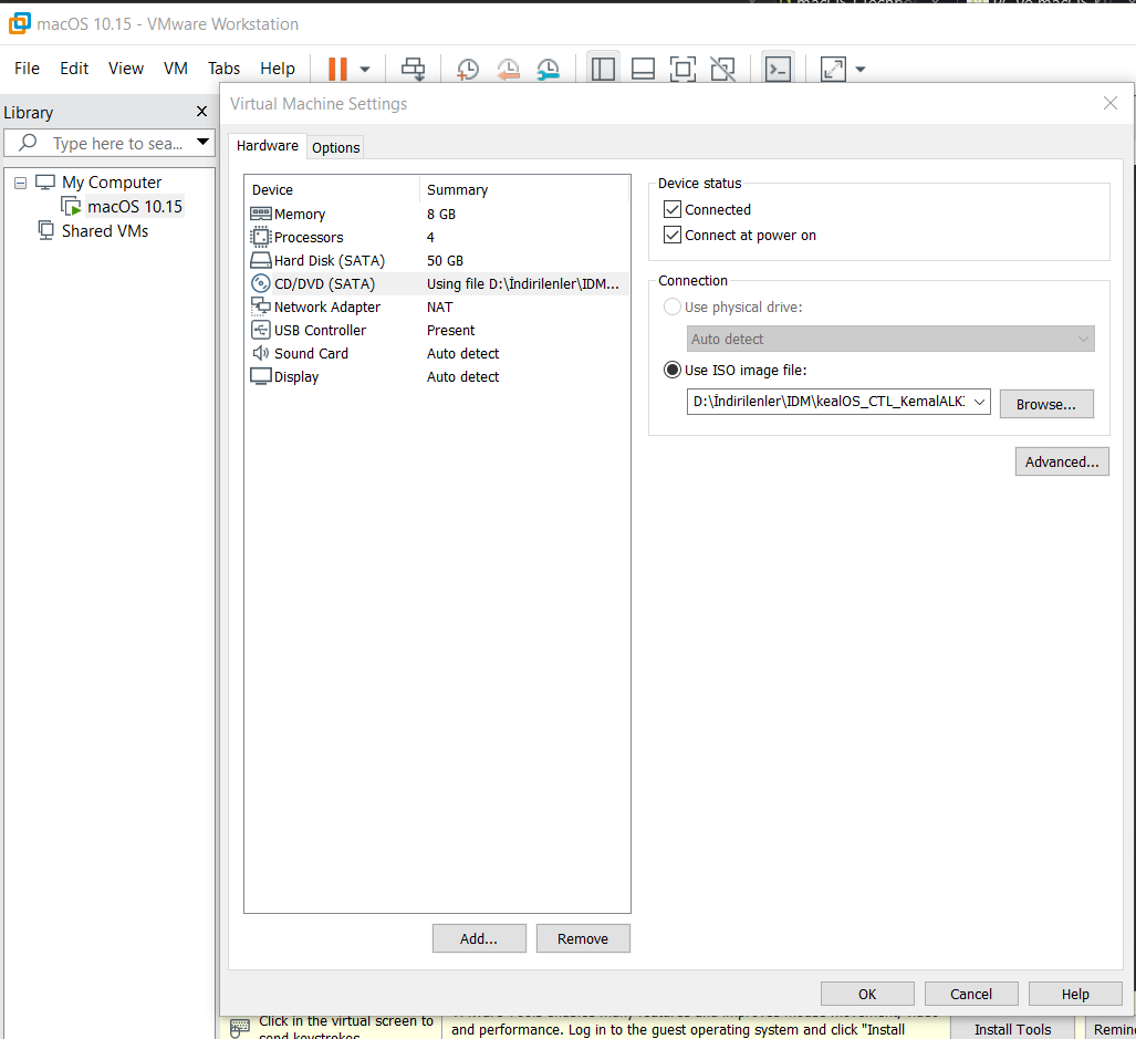 VMWare Workstation ile sanal bilgisayara macOS Catalina 10.15 sürümünü kuruyoruz.