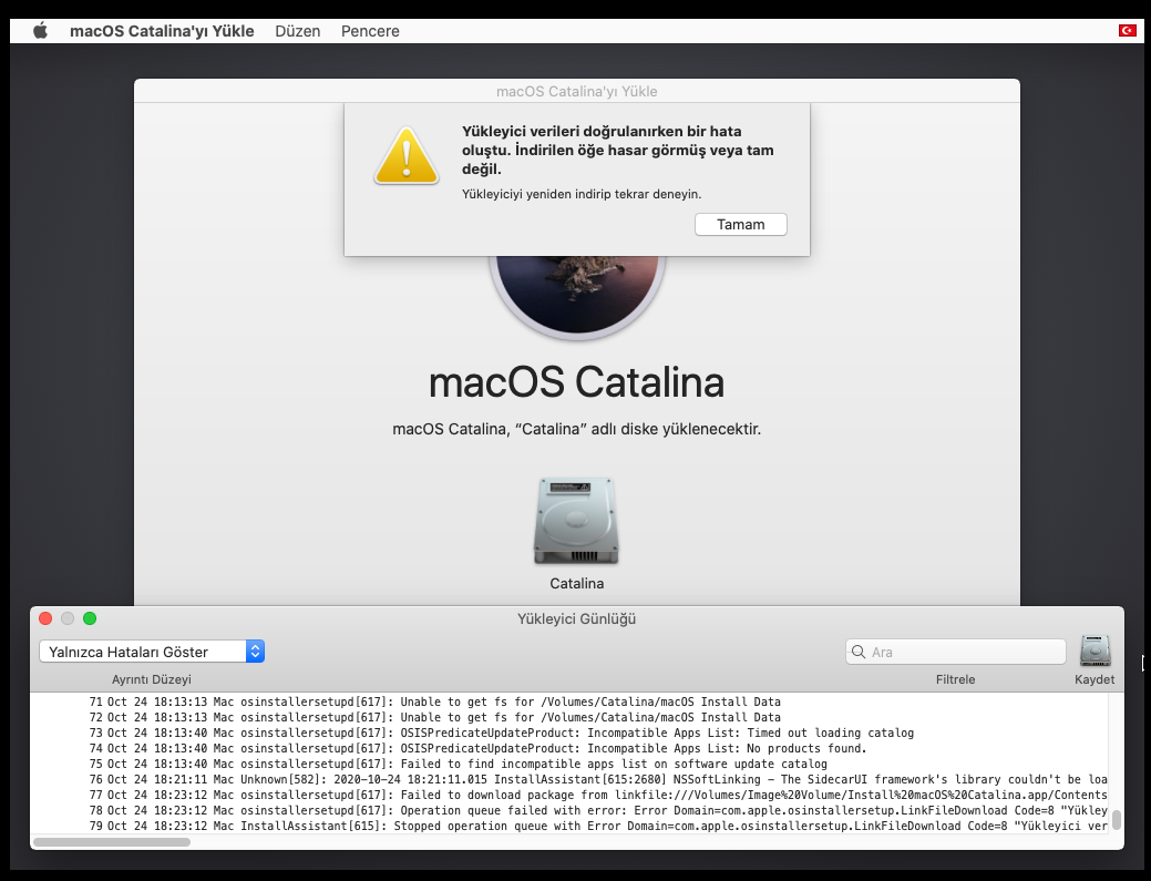 macOS catalina adlı diske kurarken geceden bıraktım ama hiç dolmamıştı. Bir sorun mu var ne kadar sürüyor diske kurması.