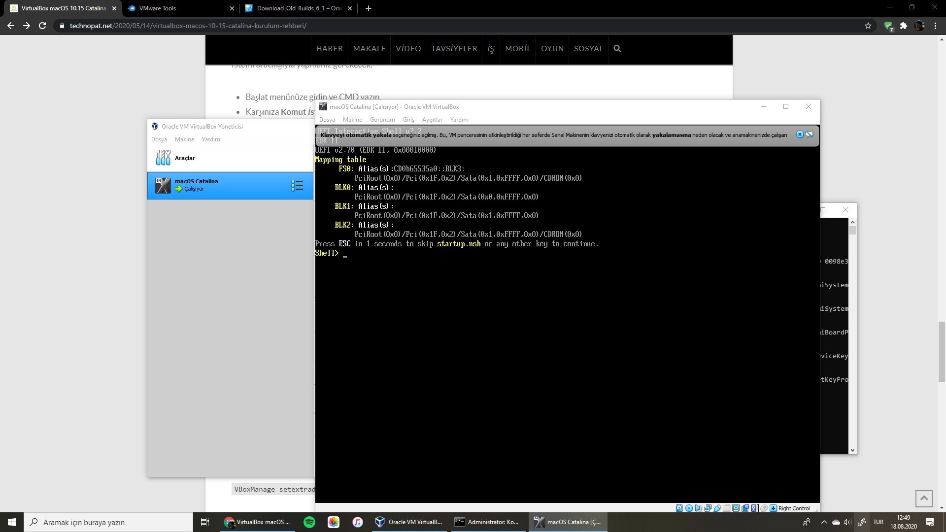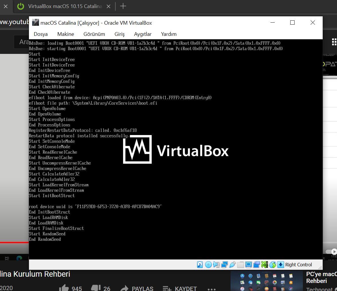 macOS 10.15 Catalina işletim sistemini Windows 10 içinde çalışan VirtualBox sanal bilgisayara kuruyoruz.